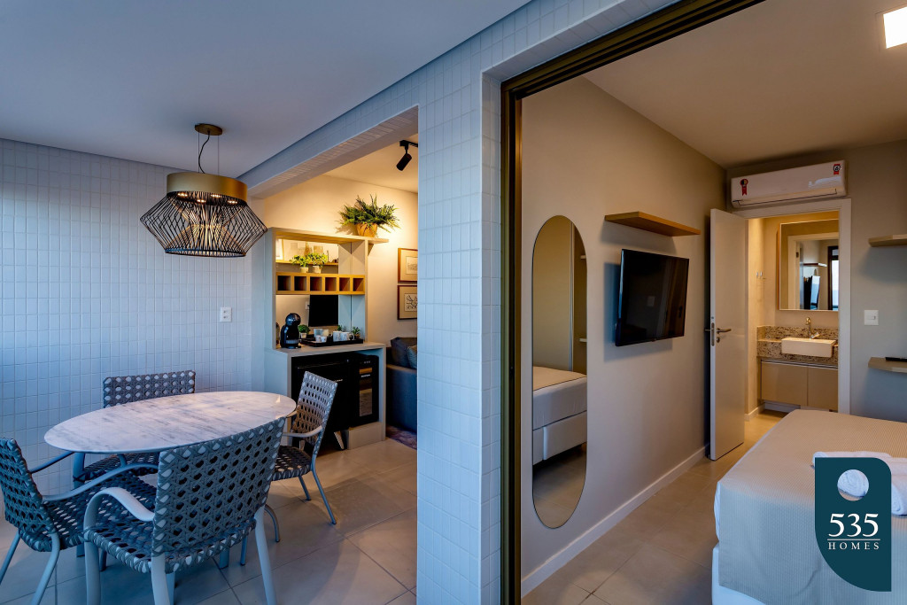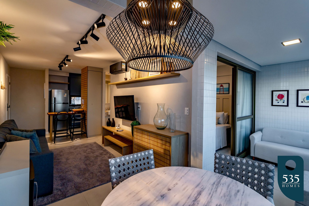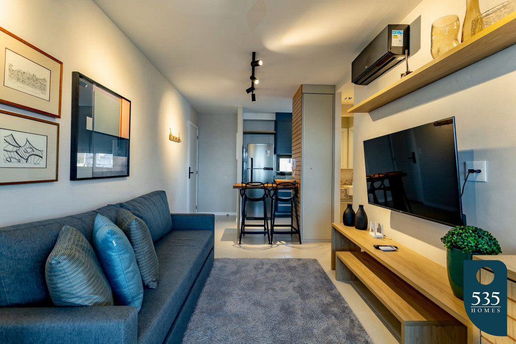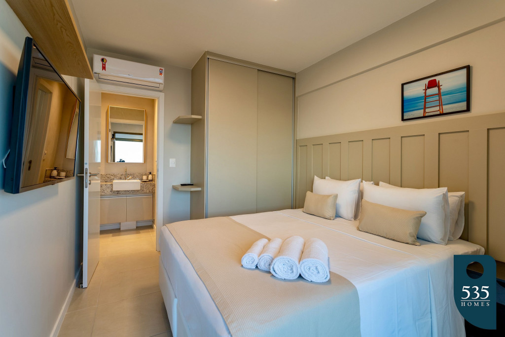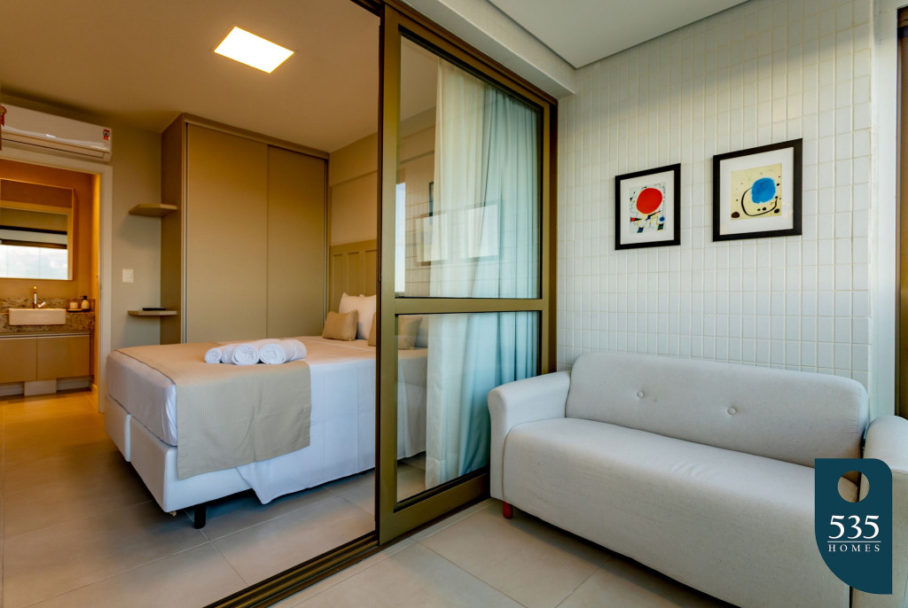 Apartamento lindamente decorado e equipado com tudo que irá tornar a sua estadia muito confortável e memorável. O apartamento possui uma cama de casal (queen), no quarto e sofá cama de casal na sala. Ar-condicionado na sala e no quarto e internet Wi-fi. Fornecemos enxoval de roupa e banho de hotelaria durante a sua estadia.