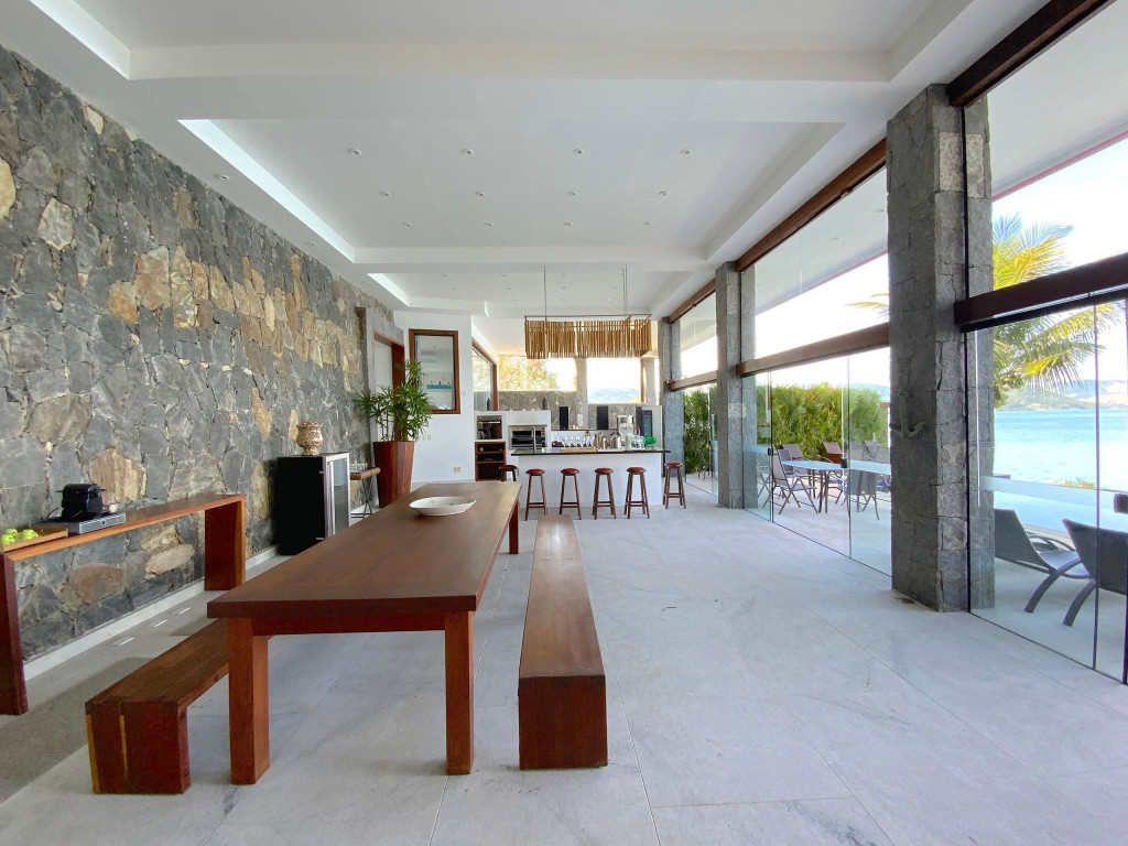 É possível chegar na mansão por terra e mar. O condomínio possui área para caminhada, corrida, ciclismo e é conhecido na região pelos vizinhos celebridades. A propriedade é pé na areia, em praia particular, possui piscina, sauna, hidromassagem externa, churrasqueira, home theater, cozinha gourmet, espaço Kids com TV, vídeo game e jogos, boate, academia de ginástica equipada, 02 Helipontos, três poitas e cais para embarcações de mais de 100 pés.