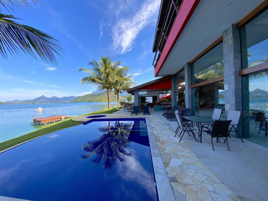 Localizada no Condomínio Caieirinha em Angra dos Reis, com segurança 24h. São 08 suítes, com fino acabamento, toda iluminação em LED, piso em porcelanato, muita luz natural, pé direito alto, e uma vista deslumbrante presente em todos os ambientes da casa.