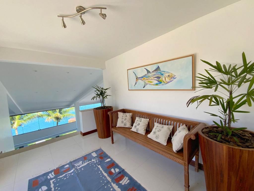 Salão com exuberante vista mar com 03 ambientes, espaço zen, sala de jantar, sala de estar