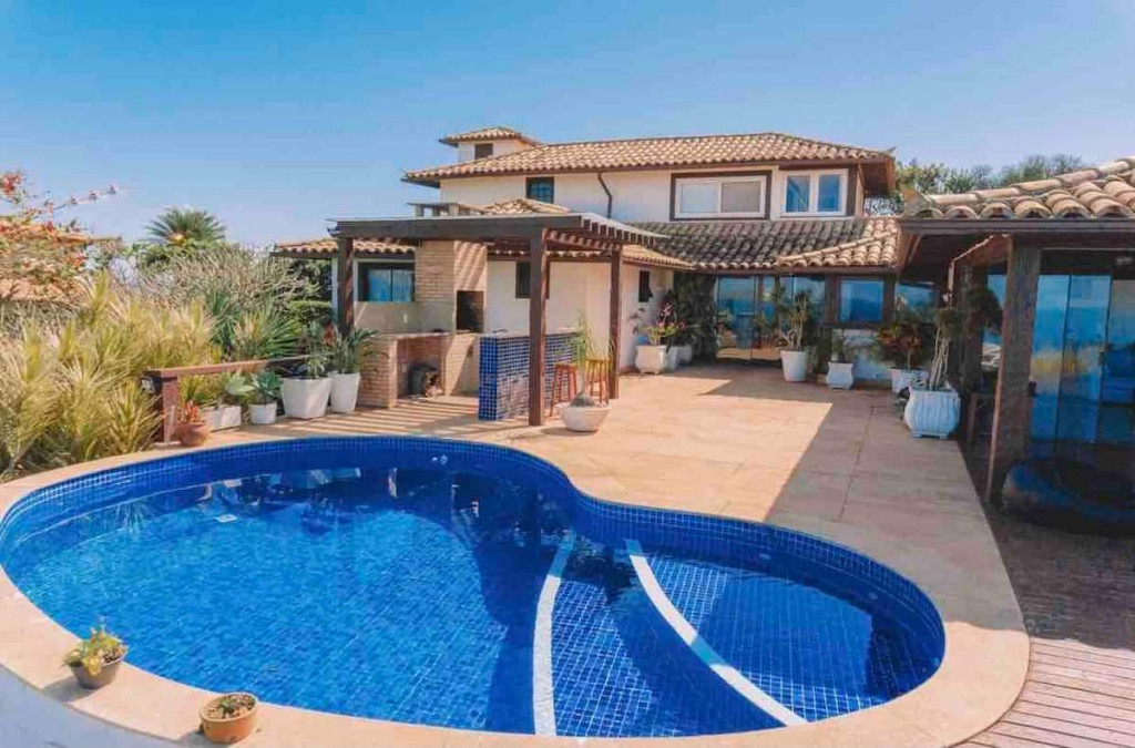 Casa com vista 360° graus para a Praia de Geribá, em condomínio monitorado 24 horas e a poucos metros da praia, é uma exclusividade para você que busca conforto e conexão com a natureza. A casa dispõe de 05 suítes e acomoda até 15 pessoas. Com sala de estar, sala de jantar e cozinha totalmente equipada. Sua área externa conta com varanda, piscina com vista, área gourmet com churrasqueira. A casa é pet friendly! Perfeita para grupos de amigos, família e locações para gravações e sessão de fotos.Hospedagem mínimo de 02 diárias