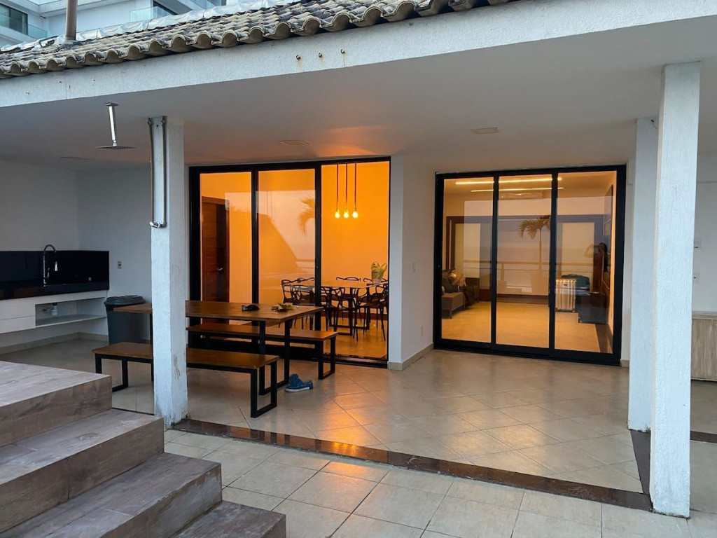 São 04 suítes, sendo 02 com banheiras de hidromassagem, sala de estar e jantar integradas, lavabo, cozinha completa com eletrodomésticos e utensílios necessários. Varandão de 110m² com piscina, churrasqueira e muito espaço para lazer.