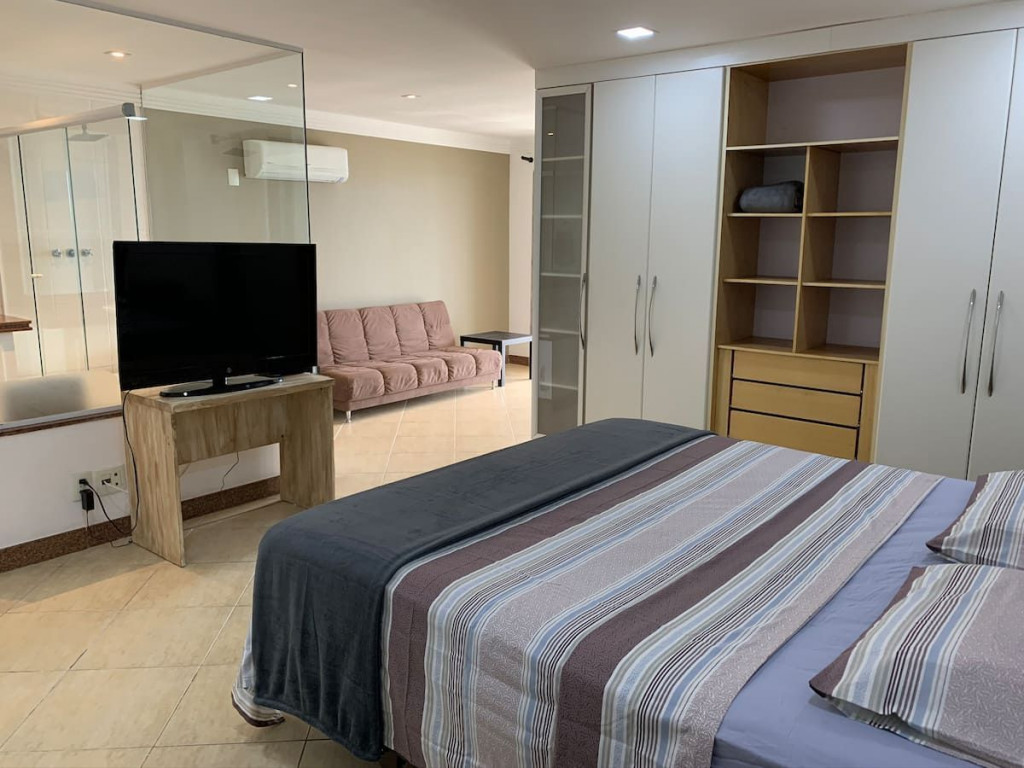 Centro gastronômico a 10 metros, mercado a 100 metros, no melhor ponto da Praia da Barra.Disposição das suítes: