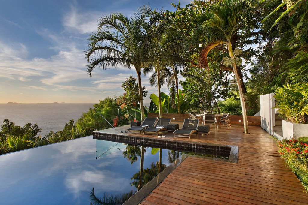 Essa maravilhosa casa está localizada em um dos pontos mais nobres da cidade, o Bairro Joá, entre a Zona Sul e a Barra da Tijuca. Distribuída em 05 andares, a casa disponibiliza 03 suítes, todas de frente para o mar, com banheiros clean em mármore branco. A casa tem 02 belíssimas piscinas na área externa, uma na varanda de uma das suítes e outra, de borda infinita, na área comum. Possui uma espaçosa sala de estar com varanda que oferece uma das vistas mais impressionantes do Rio. Mínimo para hospedagem de 02 diárias