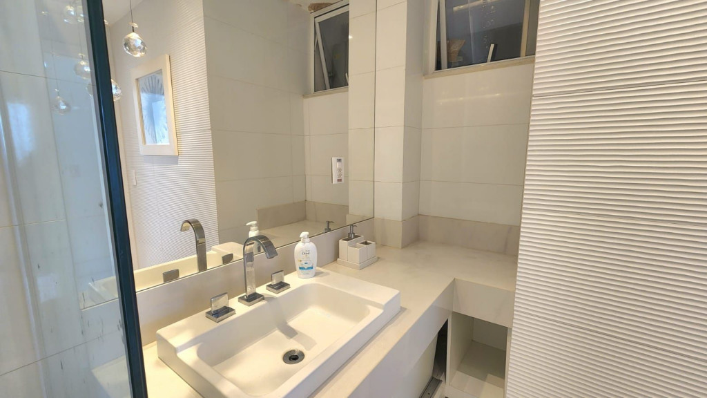 São 03 quartos, sendo 01 suíte, 01 banheiro completo e 01 lavabo. Ar-condicionado em todos cômodos e televisão.