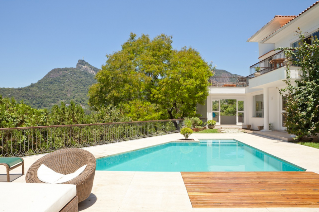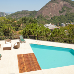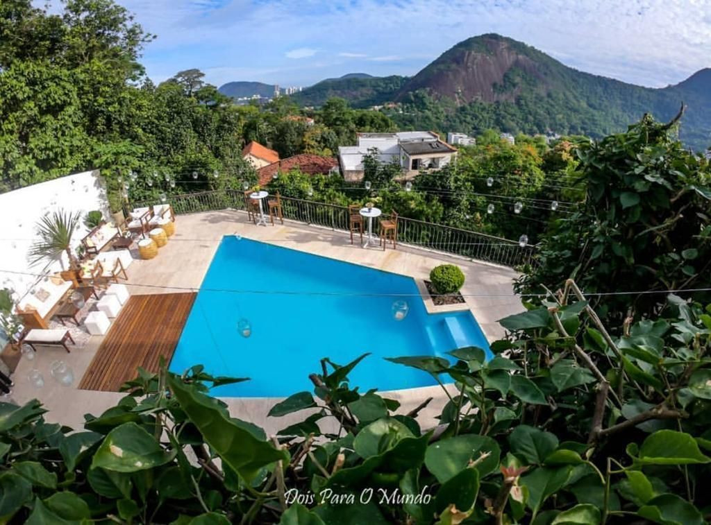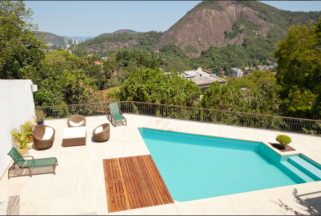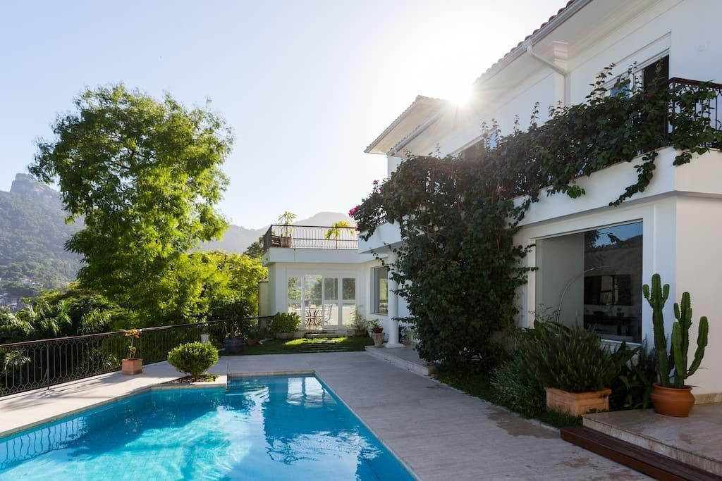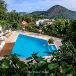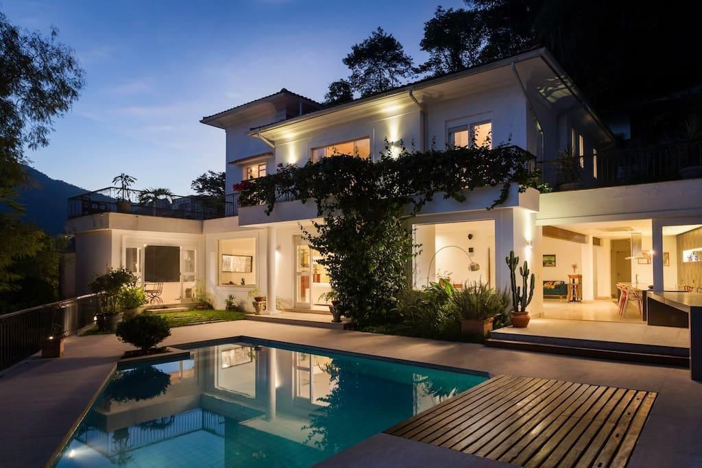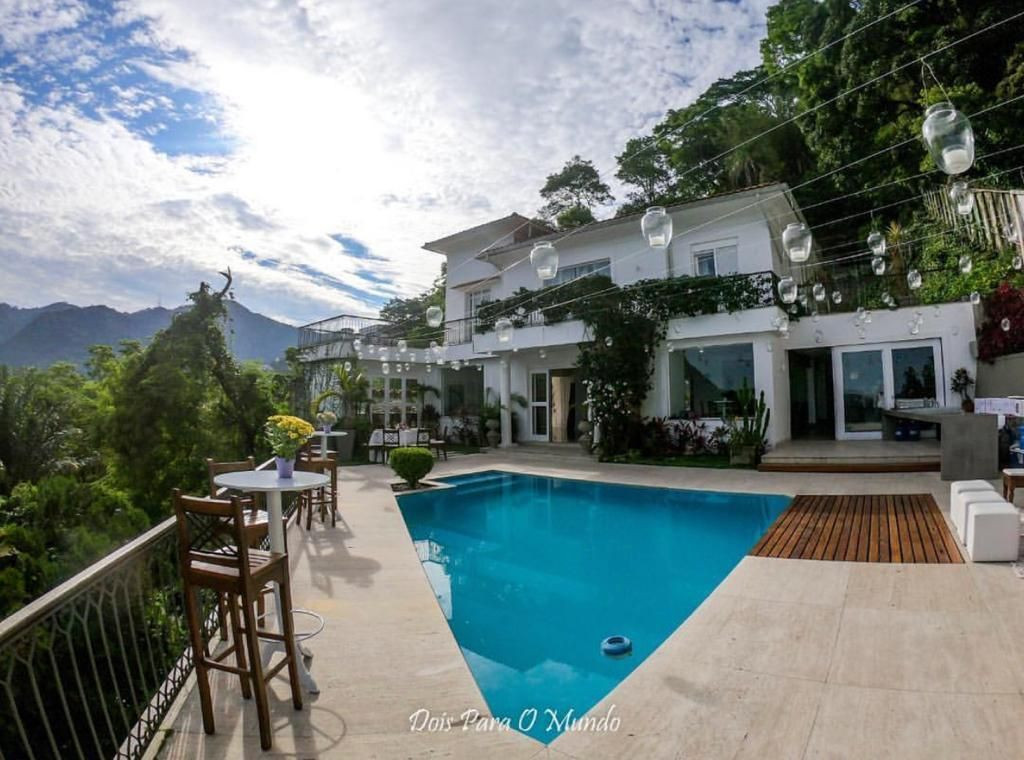 Esta magnífica mansão fica em um dos bairros mais charmosos do Rio, Santa Teresa. Cercada por natureza, oferece conforto e privacidade. Suas 05 suítes que acomodam confortavelmente 10 pessoas. Os hóspedes encontrarão na casa: móveis de jardim, um terraço de 100 m², churrasqueira, piscina privativa, cofre, uma ampla varanda, ar condicionados em todos os quartos, garagem a céu aberto com capacidade para 05 carros, tv e internet. A cozinha é equipada com geladeira, micro-ondas, forno, freezer, maquina de lavar louças, máquina de lavar roupas, utensílios de cozinha, cafeteira, torradeira e liquidificador. Nas redondezas há diversas opções de restaurantes, bares e lojas.Mínimo de 02 diárias