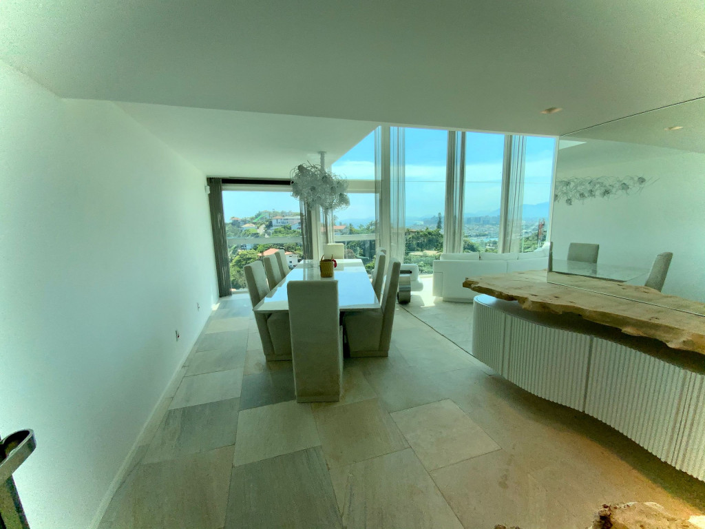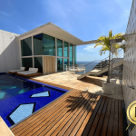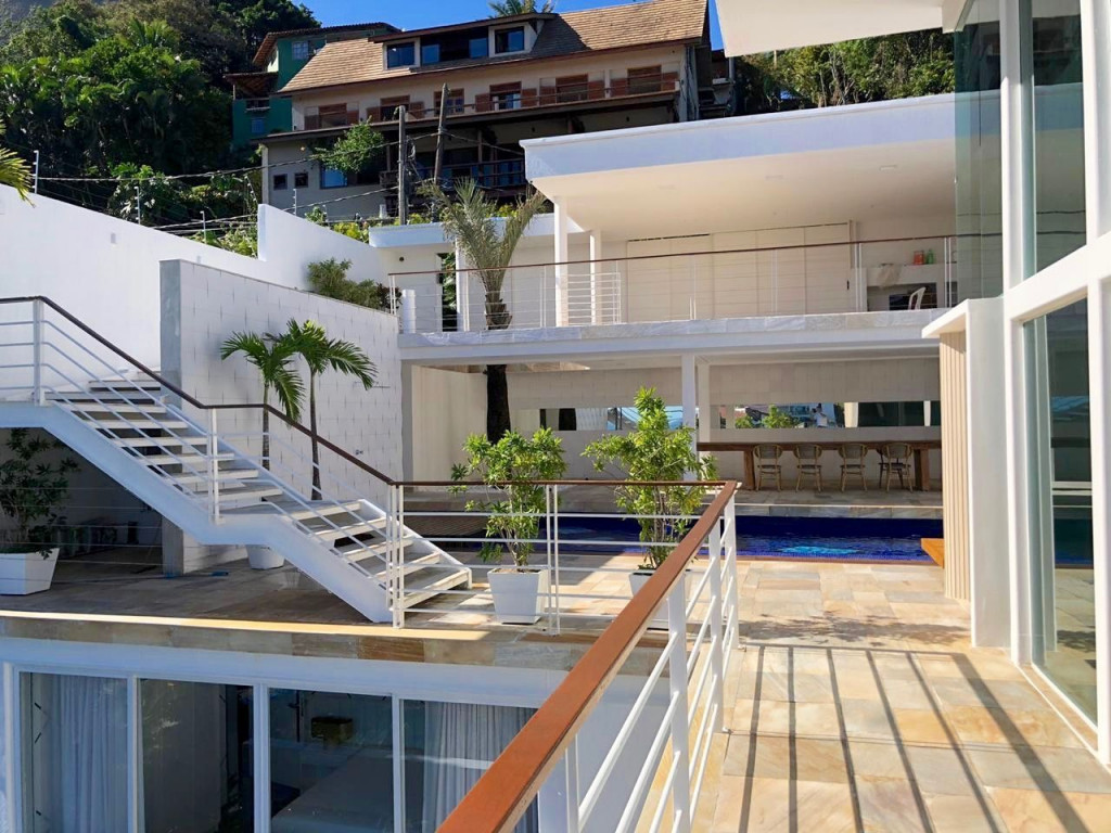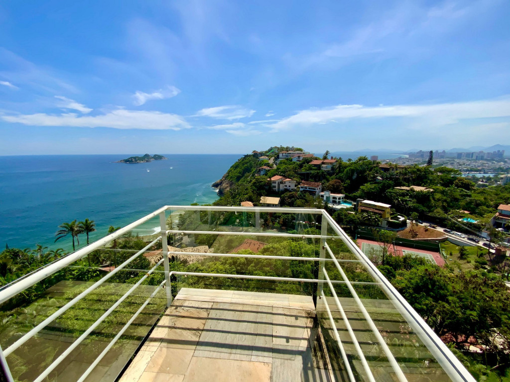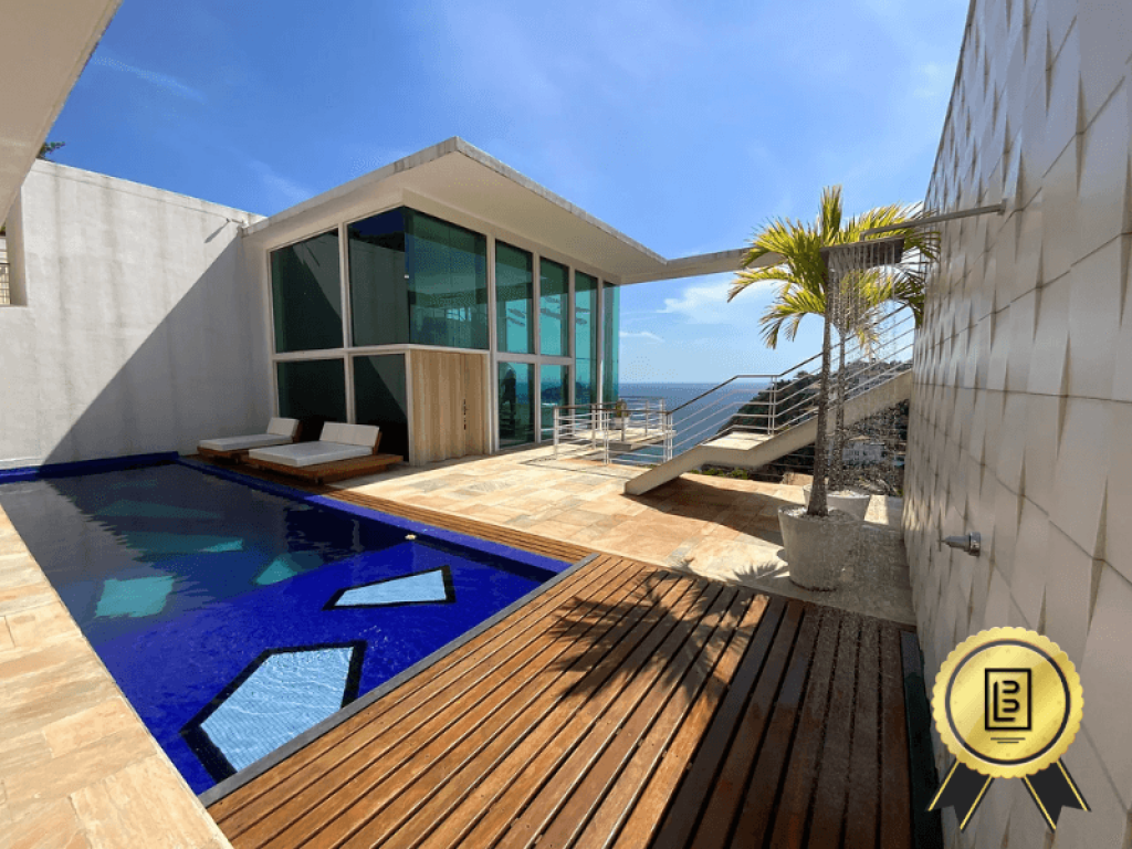O imóvel possui 03 maravilhosos quartos, sendo 02 suítes, 05 banheiros, sala de estar, sala de TV, mezanino, piscina e área de lazer coberta, além de uma mesa de madeira rústica, ideal para receber os convidados. Todos os cômodos possuem vista para o mar ou para a natureza e, certamente, sua estadia será muito aconchegante, pois o ambiente desta mansão é leve, privativo, seguro e tranquilo. A mansão se encontra no topo da montanha e possui decoração clean, com uma arquitetura moderna contemporânea em que se misturam tons frios e quentes, harmonizando todo o visual. O Bairro do Joá é um dos mais exclusivos e charmosos do Rio. Venha desfrutar desta experiência com seus familiares e aproveite para registrar belíssimas fotos!Hospedagem mínimo de 02 diárias