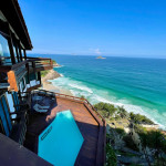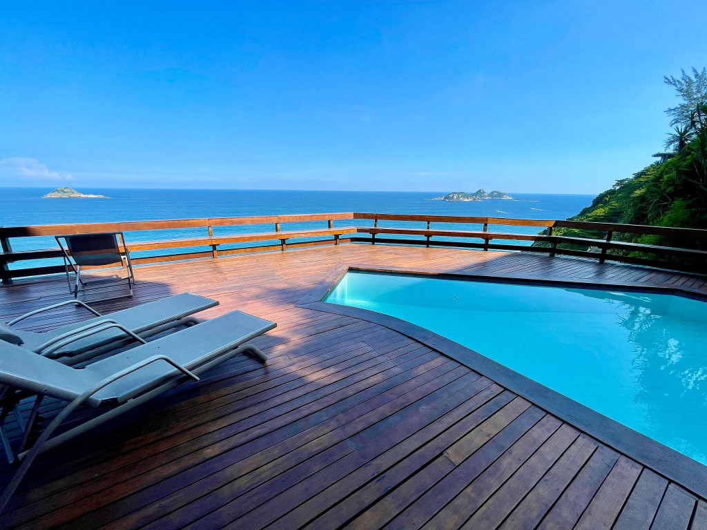 Essa luxuosa mansão acomoda confortavelmente até 12 pessoas. São 05 suítes espaçosas com vista para o mar e ar-condicionado. Conta com amplas áreas comuns com salas de estar, jantar, lavabo, home theater, home office, deck, churrasqueira, salão de jogos, sauna e banheiro. Os quartos incluem: suíte master com cama queen-size, closet, jacuzzi com chuveiro separado, 04 suítes com camas queen size, armários e varandas com vista para o mar. Propriedade com vista deslumbrante e relaxante à beira-mar.MÍNIMO DE 03 DIÁRIAS PARA HOSPEDAGEM