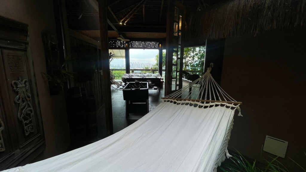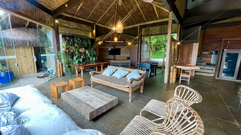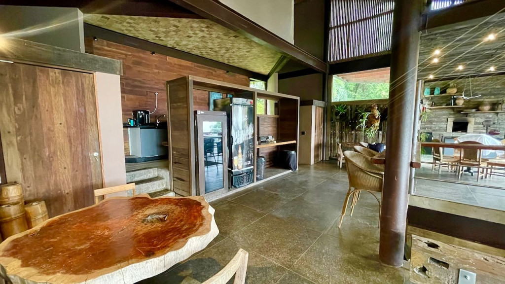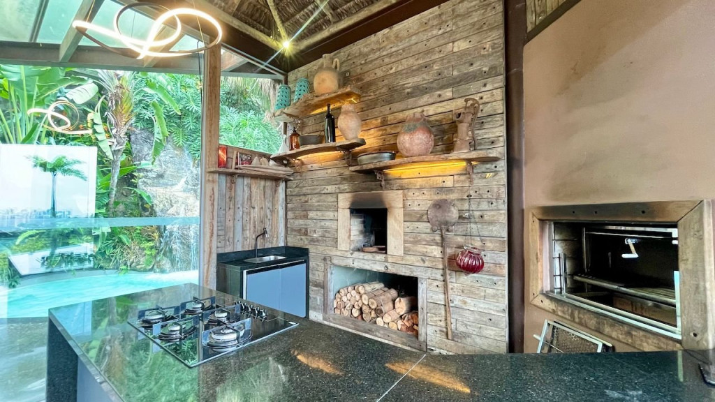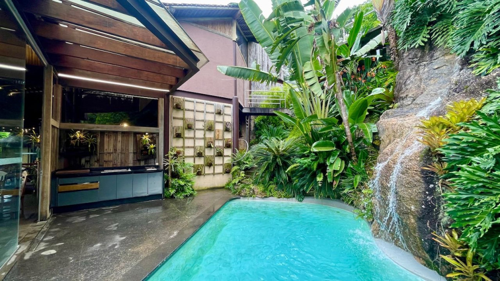 Casa exclusiva para realização de eventos diurnos. Com um projeto no estilo rústico de alto padrão, com pedras nativas, madeira vidro e uma linda vista panorâmica para as ilhas e mar da Barra da Tijuca. O pavimento para a realização do evento possui uma linda piscina com cascata, sauna, espaço gourmet com churrasqueira e forno à lenha, vasta área verde, sala de vídeo, sala de estar, ampla área com mesas e cadeiras, banheiro social, terraço com vista panorâmica e um elevador. O Espaço é 100% equipado, confortável e amplo, apropriado para pequenos eventos, além de ensaios fotográficos e filmagens. Ideal para um almoço ou jantar: cozinha totalmente equipada, com churrasqueira e forno a lenha, adega e cervejeira. Perfeito para um dia de fotos e gravação, com diferentes vistas e luz, ideal também para dia de noiva. O espaço tem elevador e conta com duas suítes e sauna seca.Carnaval 2024