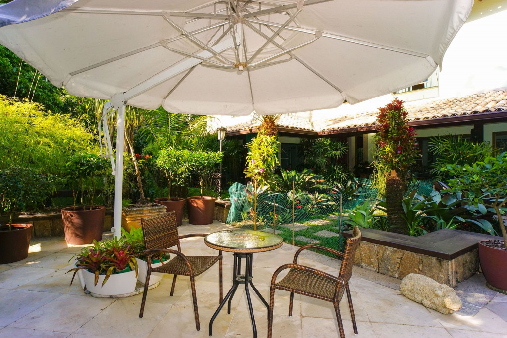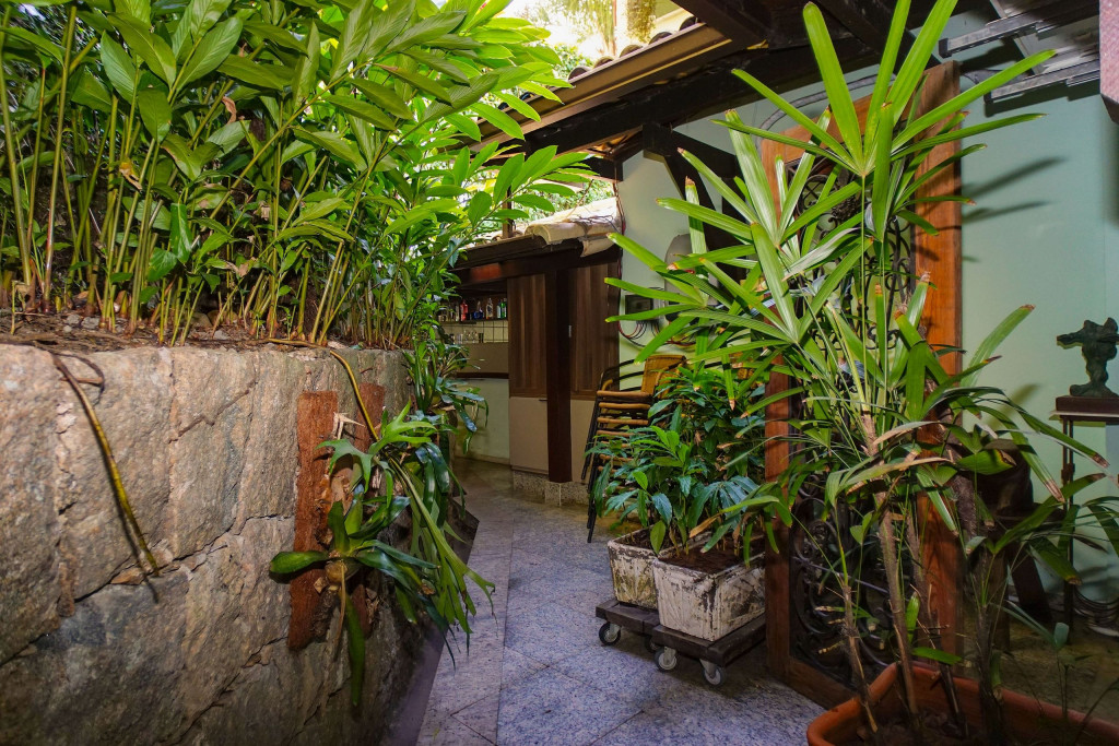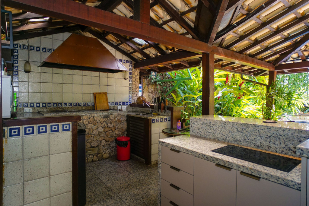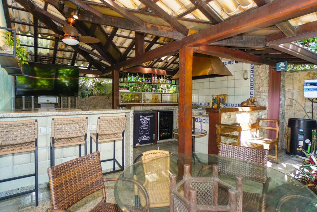 A casa conta com caseiro e empregada doméstica. O caseiro é responsável pela limpeza da área externa e piscina. A empregada doméstica fica no imóvel (pernoita na casa) em local específico e é a responsável por cuidar e alimentar o cachorro da raça Boxer que fica na casa. É possível contratar a empregada doméstica para limpeza do imóvel e para cozinhar, mediante pagamento a parte, a combinar de acordo com o número de hóspedes.