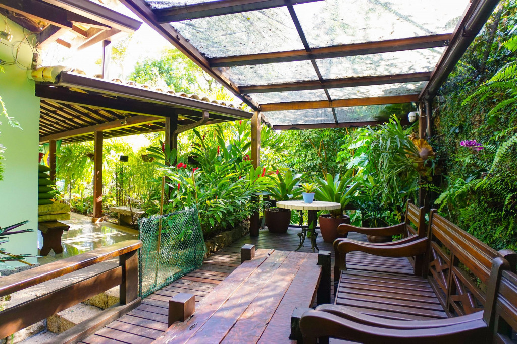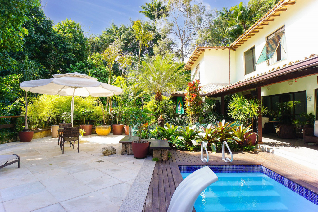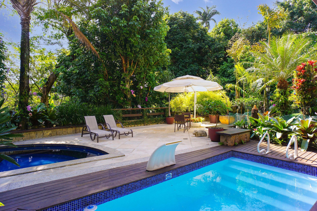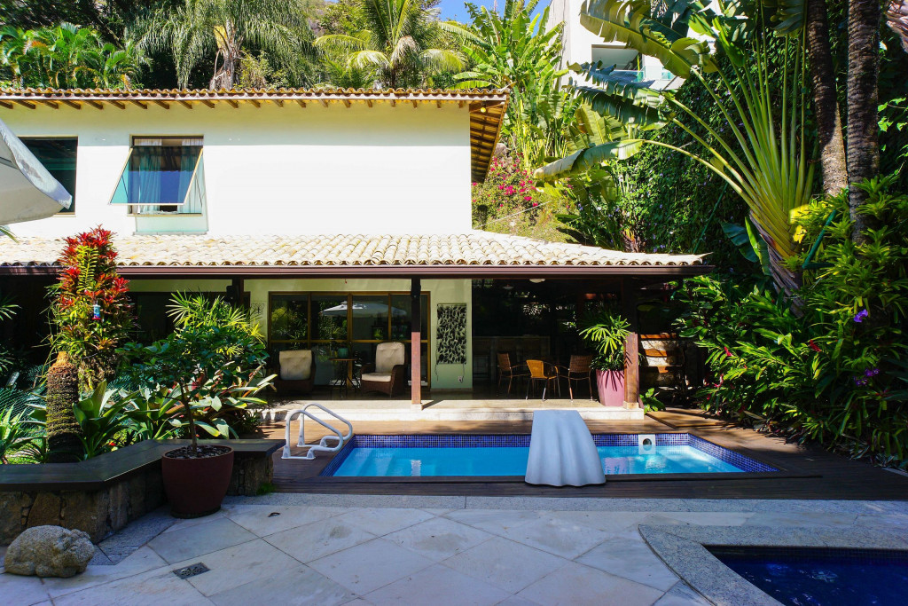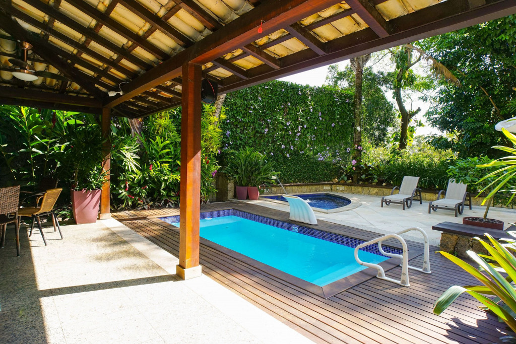 A casa conta com caseiro e empregada doméstica. O caseiro é responsável pela limpeza da área externa e piscina. A empregada doméstica fica no imóvel (pernoita na casa) em local específico e é a responsável por cuidar e alimentar o cachorro da raça Boxer que fica na casa. É possível contratar a empregada doméstica para limpeza do imóvel e para cozinhar, mediante pagamento a parte, a combinar de acordo com o número de hóspedes.