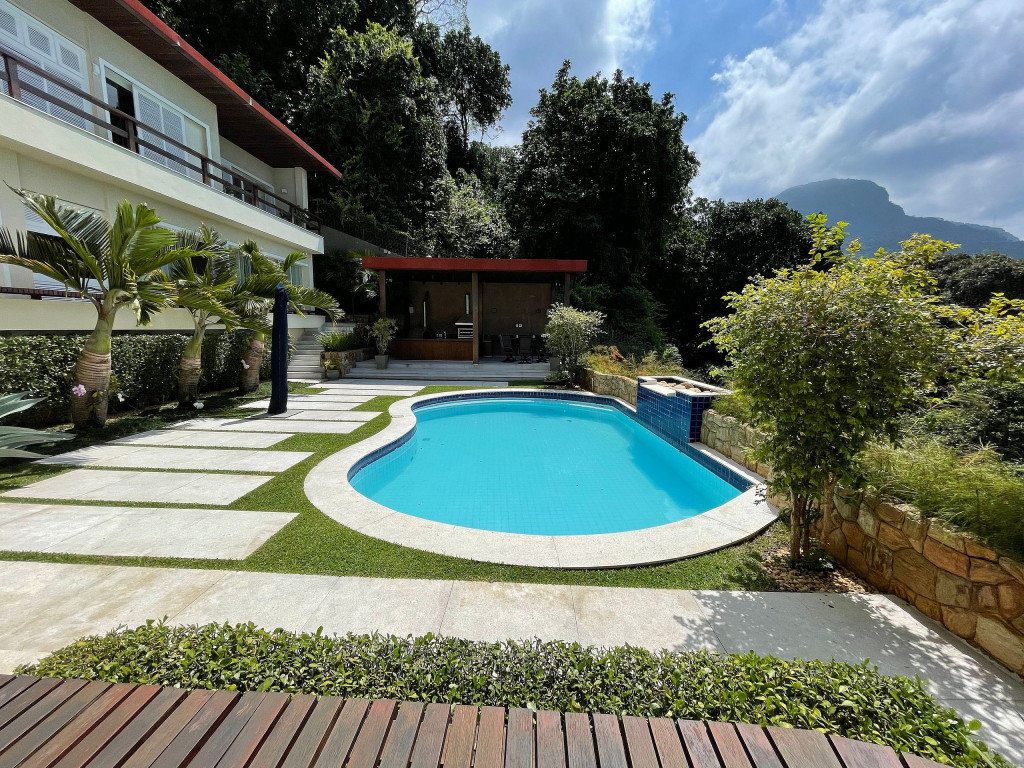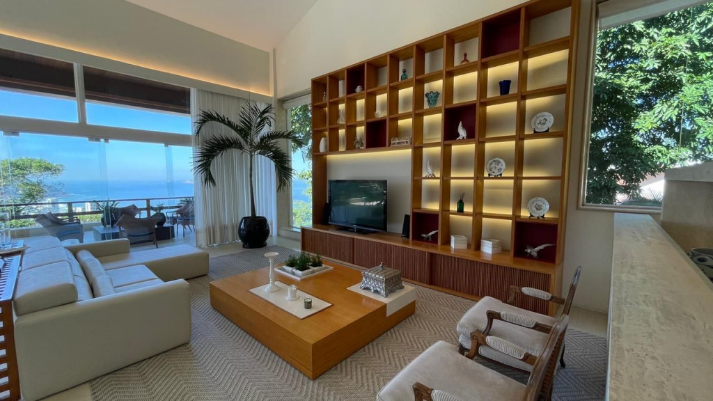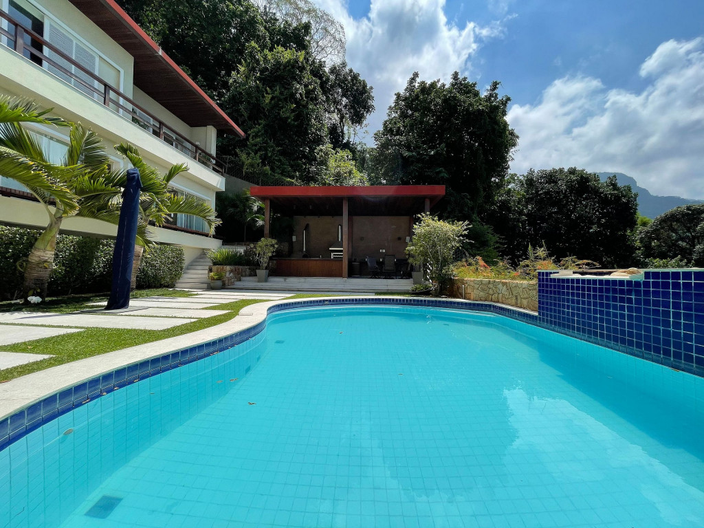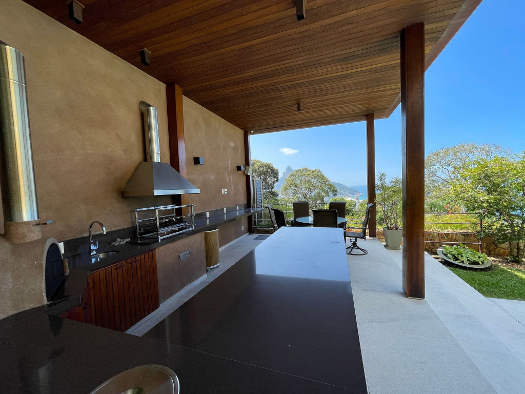 Maravilhosa mansão em São Conrado com vista deslumbrante e projetada pelo renomado arquiteto Erick Figueira de Mello. Seus cômodos são em sua maioria voltados para a vista estonteante do mar e do Morro Dois Irmãos. O salão principal é composto por um belíssimo pé direito duplo integrado a um incrível varandão e a sala de estar e jantar. Essa mansão também conta com 05 quartos, sendo 04 suítes, cozinha, 02 lavabos (adega e sala), lavanderia, despensa, louceiro, sala de ginástica ampla e adega.