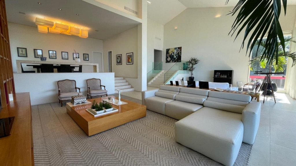 Possui circuito de monitoramento, som e câmeras e, é toda automatizada, podendo ser controlada por I-Phone ou tablet. A garagem comporta 04 vagas cobertas. Conta ainda com casa independente para caseiro e dependência completa.