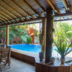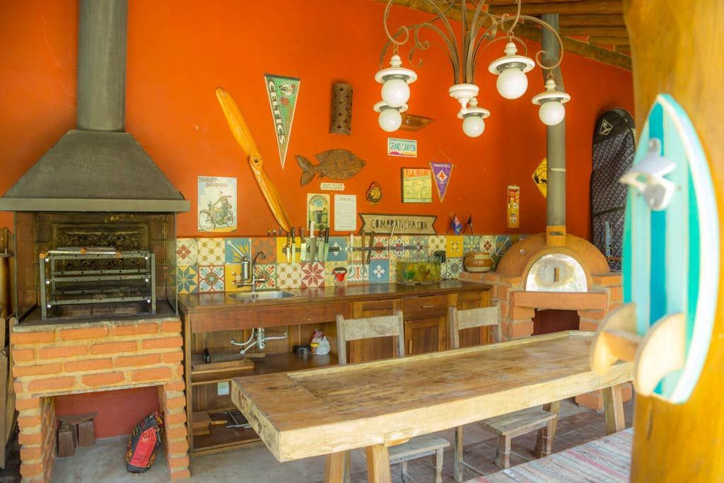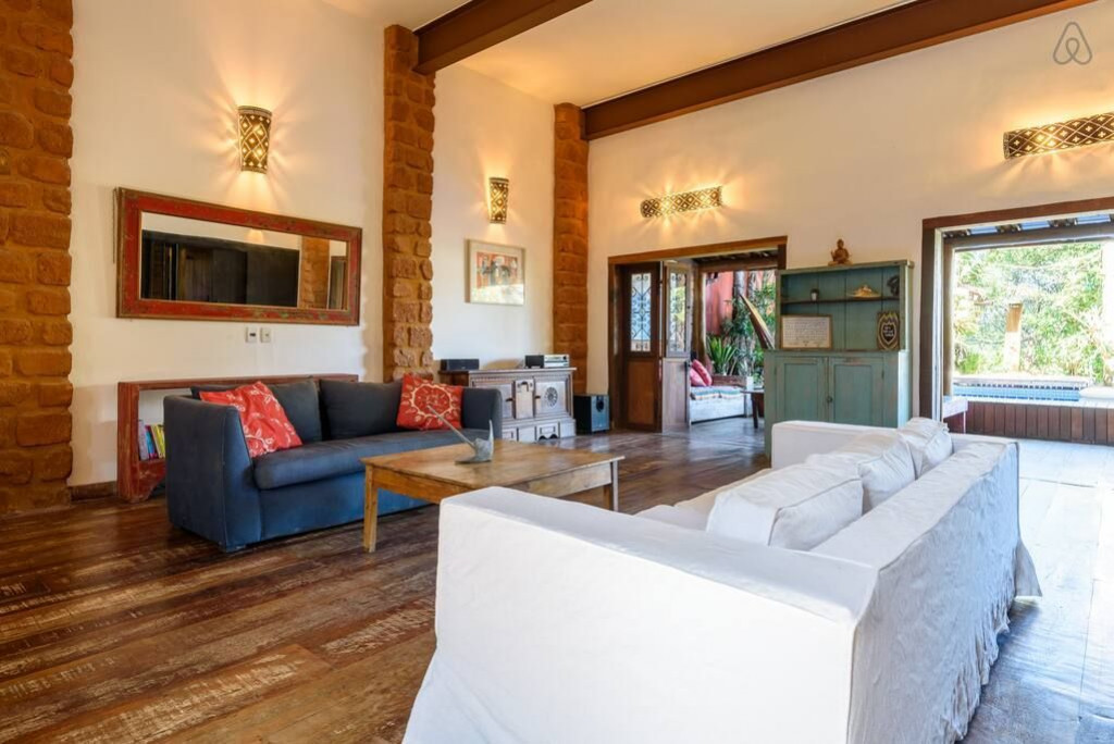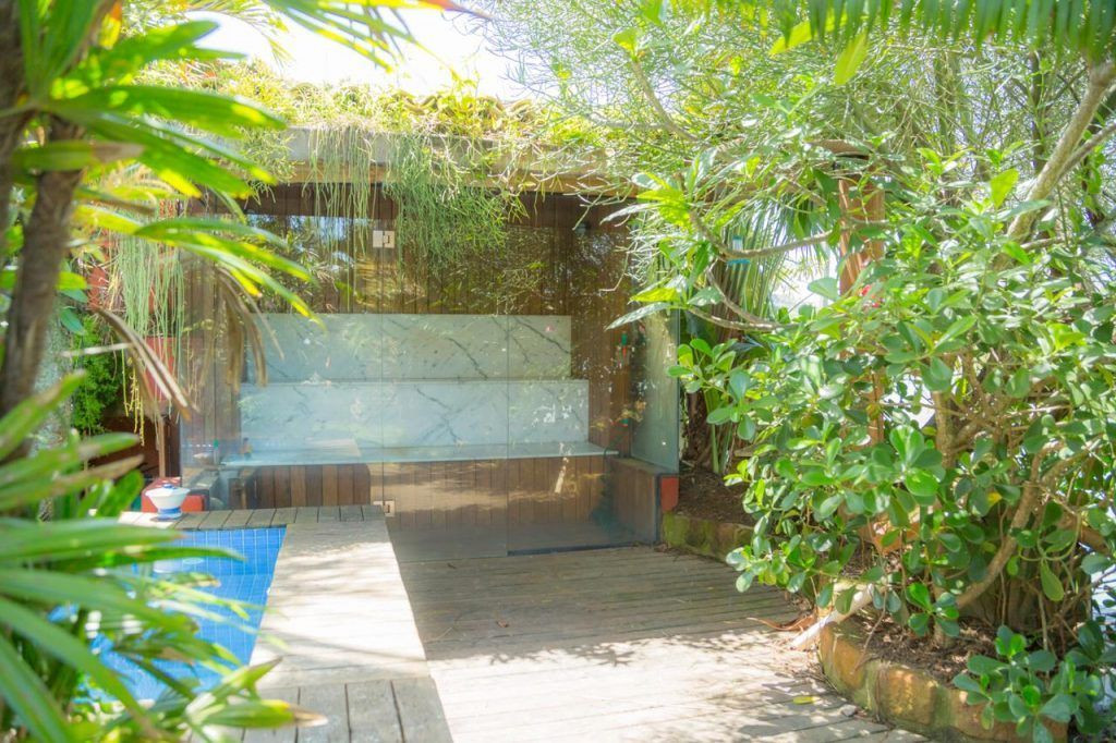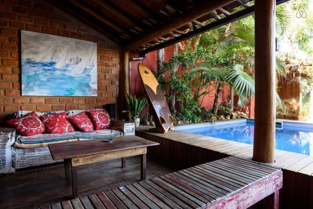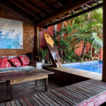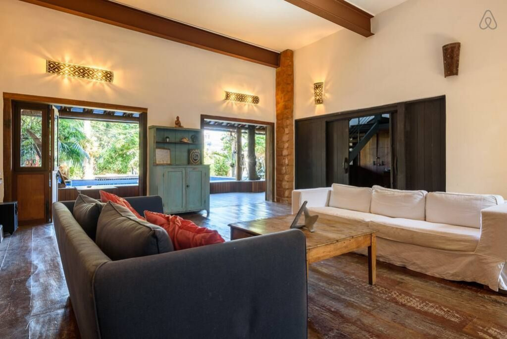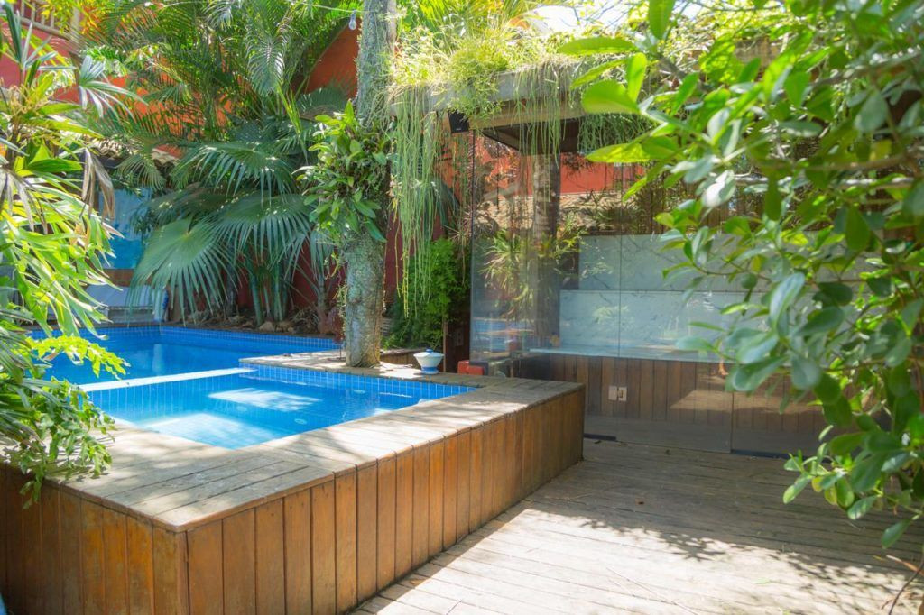 Suíte ampla toda em madeira com mais de 70m². Com vista para Pedra Gávea e Jardim Oceânico. Wi-fi, Split, Cama king size, TV 48”, 6 camas de solteiro e banheiro rústico.Mínimo de 03 diárias