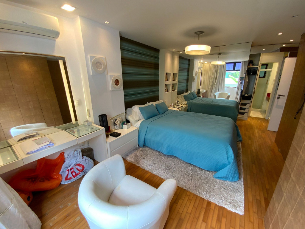 Imóvel de altíssimo padrão, com 250 m², frontal mar no melhor trecho da Praia da Barra da Tijuca. Localização privilegiada, com vista incrível da praia e dos praticantes de esportes radicais como Kitesurf e Windsurf que velejam em frente ao imóvel. Apartamento no primeiro andar do prédio, com decoração Casa Cor, recém decorado pela renomada arquiteta Gorete Colaço. São 04 suítes, com closets ou armários planejados, sendo a suíte máster com 02 banheiros e um deles com jacuzzi. Ampla sala de estar com vista para o mar, sala de jantar, sala íntima de TV, cozinha gourmet, área de serviço com lavanderia, dependência completa. Móveis, marcenaria, equipamentos, acabamentos, mármores, granitos, louças e metais, tudo de primeira linha. Ainda conta com 03 vagas de garagem.Prédio com infraestrutura completa com piscina, sauna, salão de festas, churrasqueira, portaria e segurança 24h, circuito interno de tv, Wi-Fi no prédio e 02 elevadores (social e serviço).Mínimo para hospedagem de 02 diárias