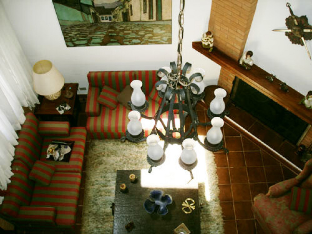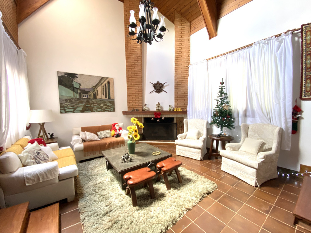- Sala aconchegante, pé direito duplo, com lareira