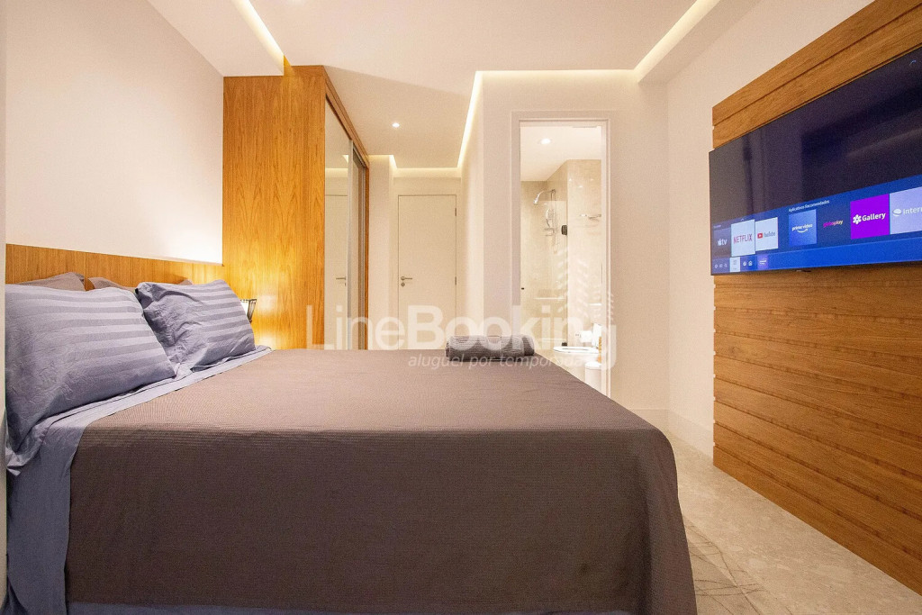 Suite 4: Equipada com cama de casal, moveis planejados, ar condicionado Inverter, TV Smart 55\".