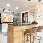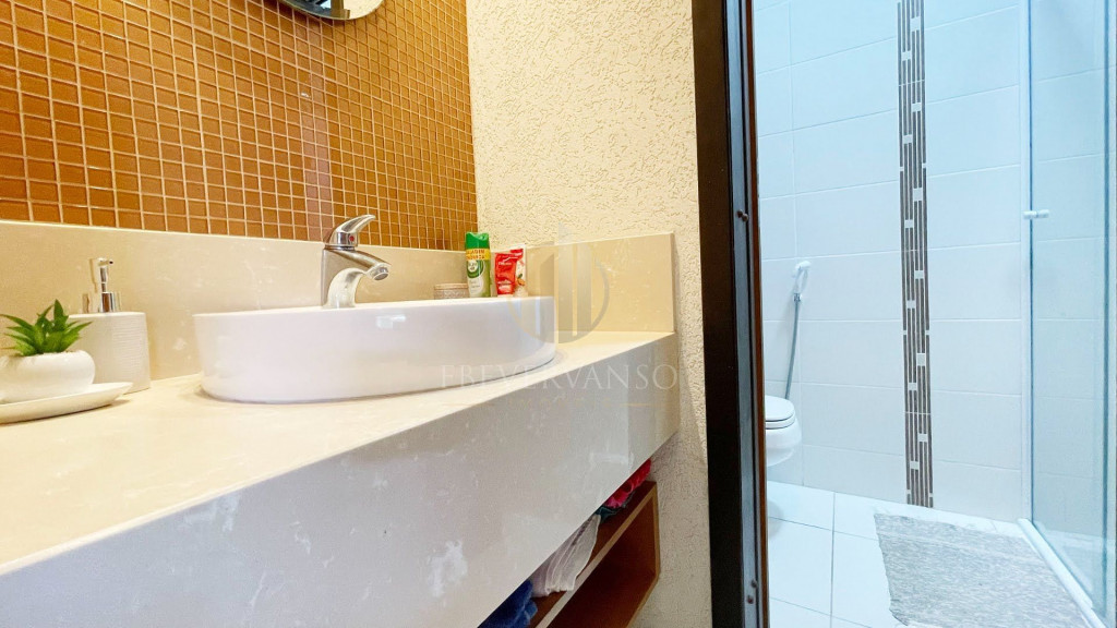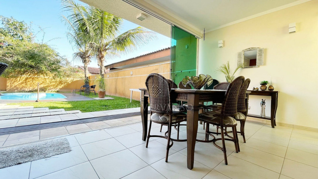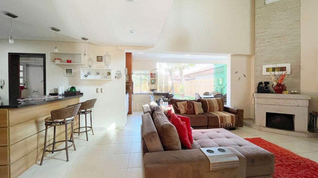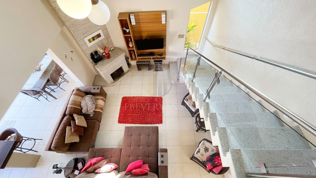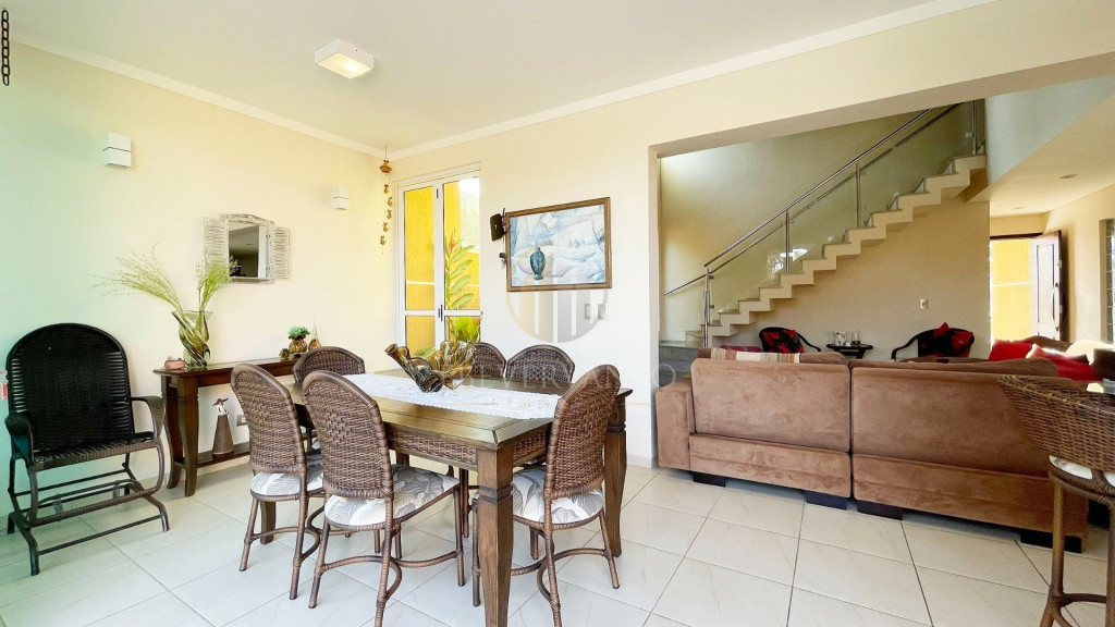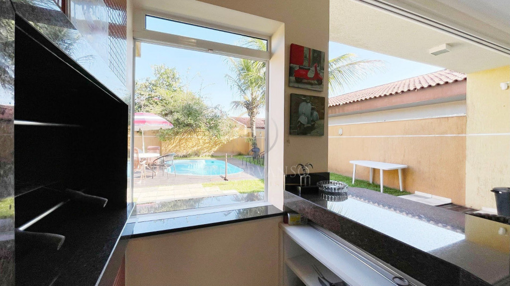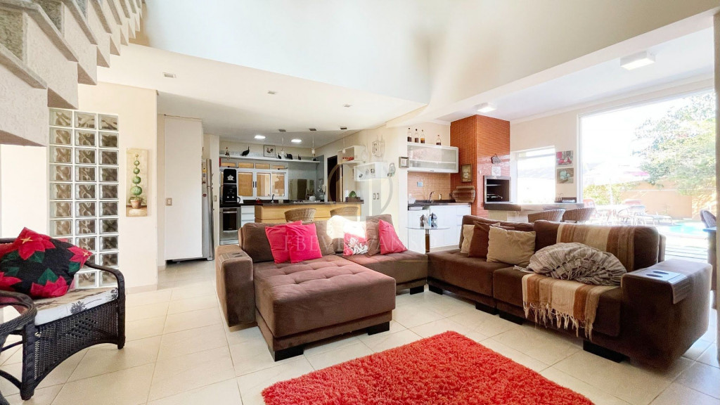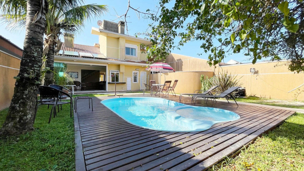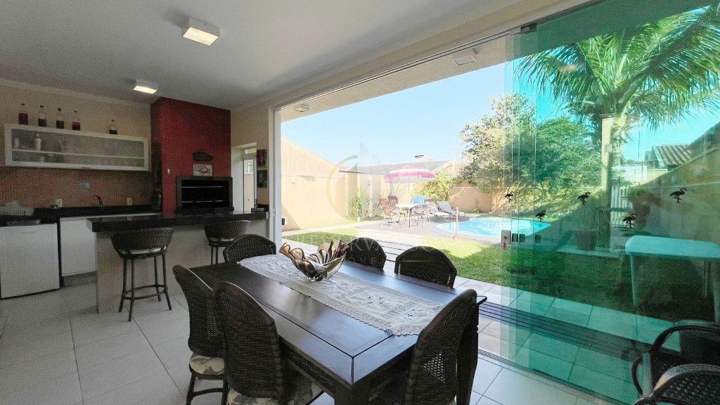 Fachada com lindas palmeiras, portão eletrônico, garagem para 04 veículos sendo 02 cobertos e 02 descobertos, 01 dormitórios, banheiro social com lavabo individual, sala de TV com lareira, cozinha planejada, sala de jantar com vista para a piscina, área do churrasco super agradável, lavanderia, piscina aquecida, lavabo externo, chuveiro para chegada do mar, deposito e pomar invisível.