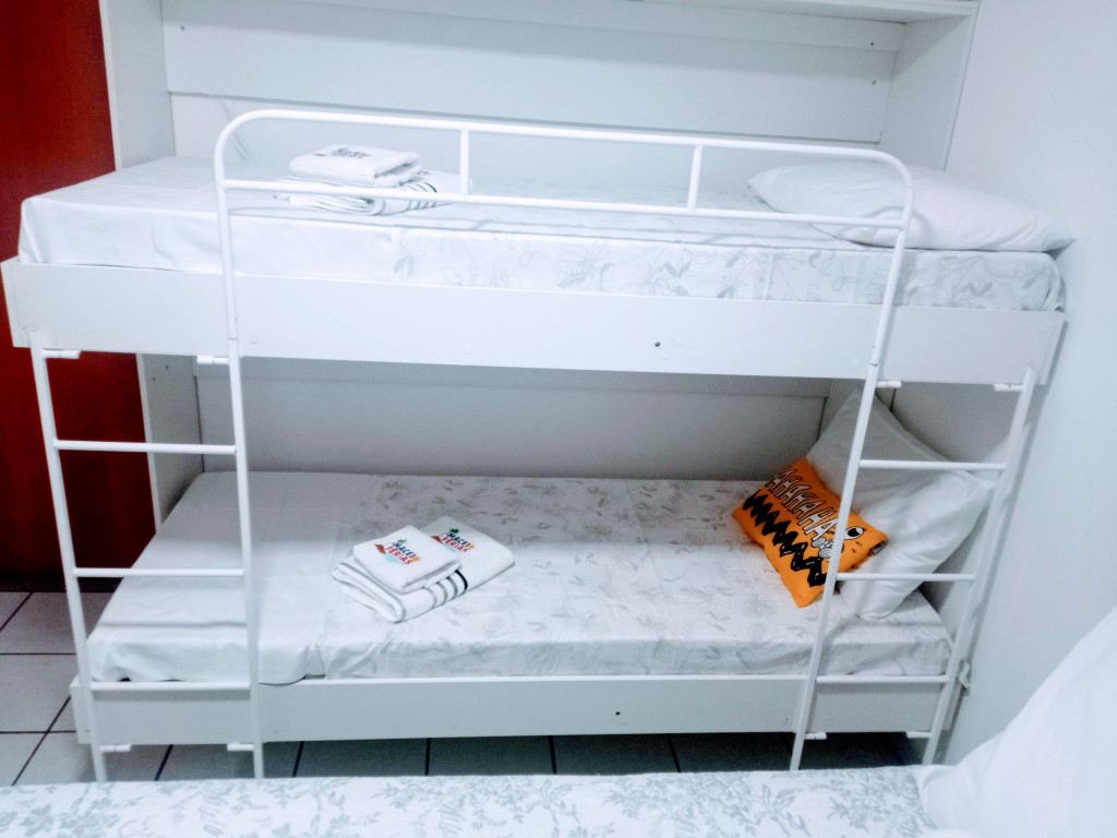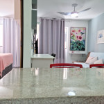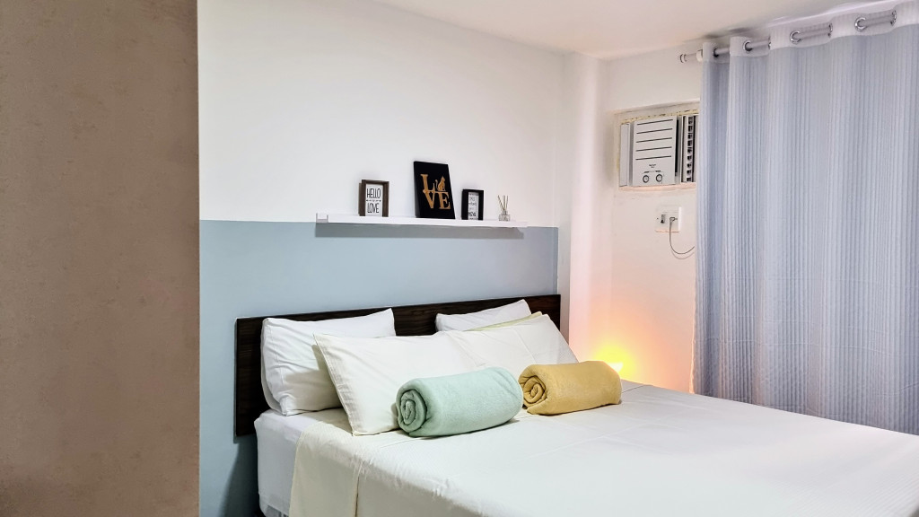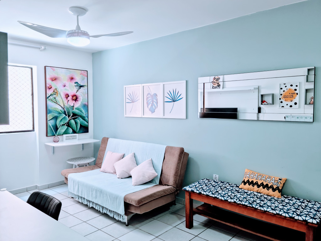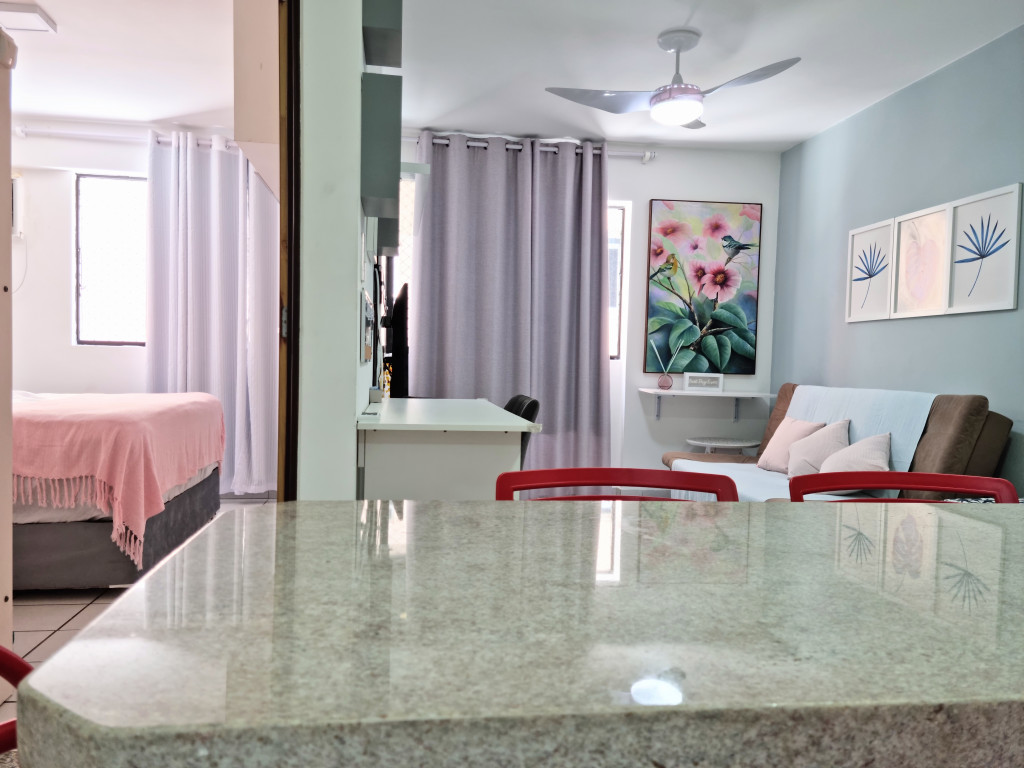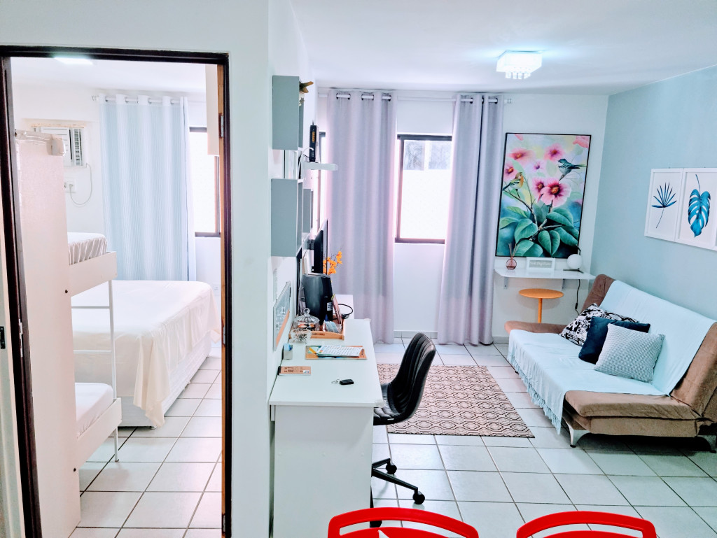 Apartamento na segunda quadra da praia de Jatiúca, tendo 1 quarto com 1 cama de casal, beliche, ar condicionado e tv