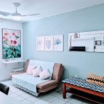Sala com sofá cama, smartv e canais a cabo.