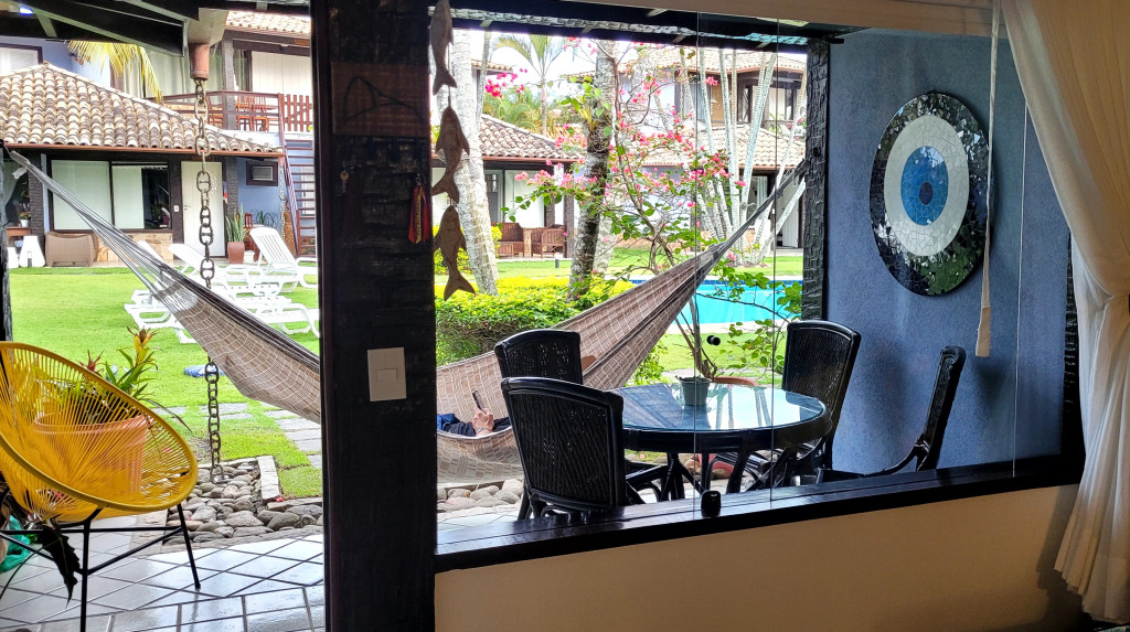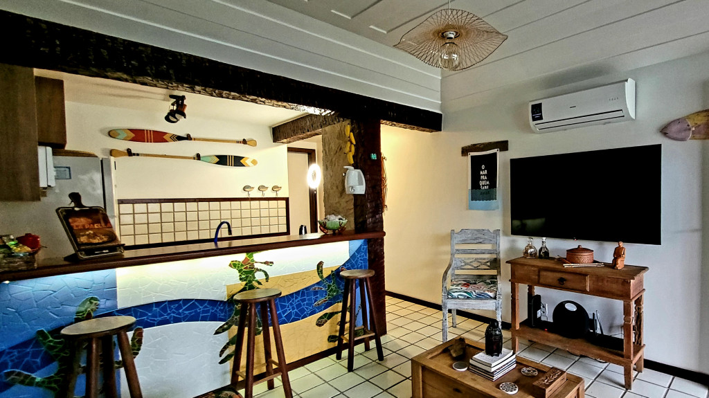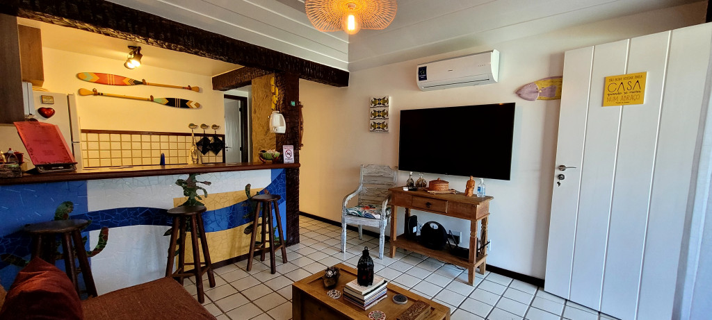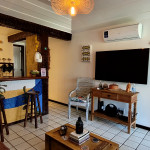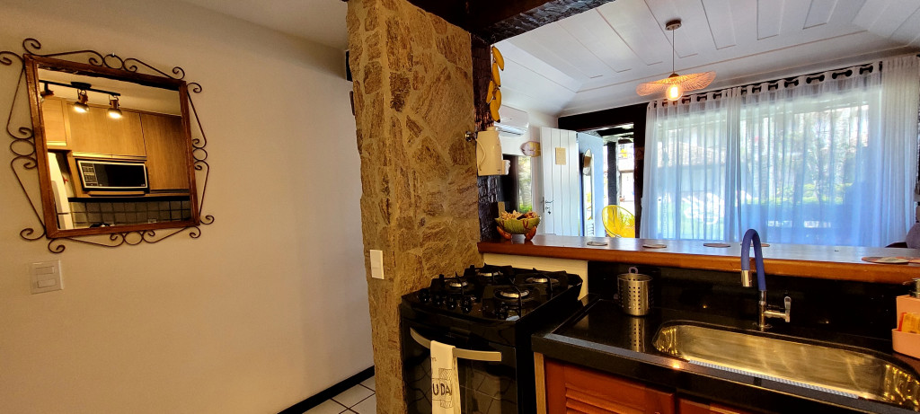 Casa de 47m2 recém reformada com sala, quarto, cozinha e banheiro, para até 4 hóspedes em um condomínio com cara de pousada: jardim, piscina, sauna, sala de jogos, quadra, wifi de 250 mega para home office, segurança 24h e estacionamento. Ideal para familias que desejam desfrutar de um espaço lindo a 5 minutos andando até a Praia de Geribá na altura do Bar Fishbone. Perfeito para hóspedes que querem uma temporada única em ponto estratégico para curtir o melhor da praia mais famosa de Buzios. Por regra do condomínio não hospedamos pets.