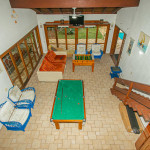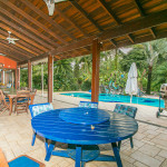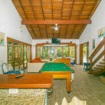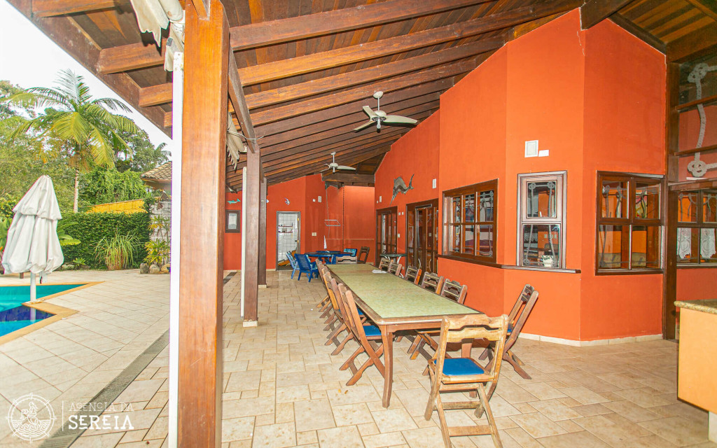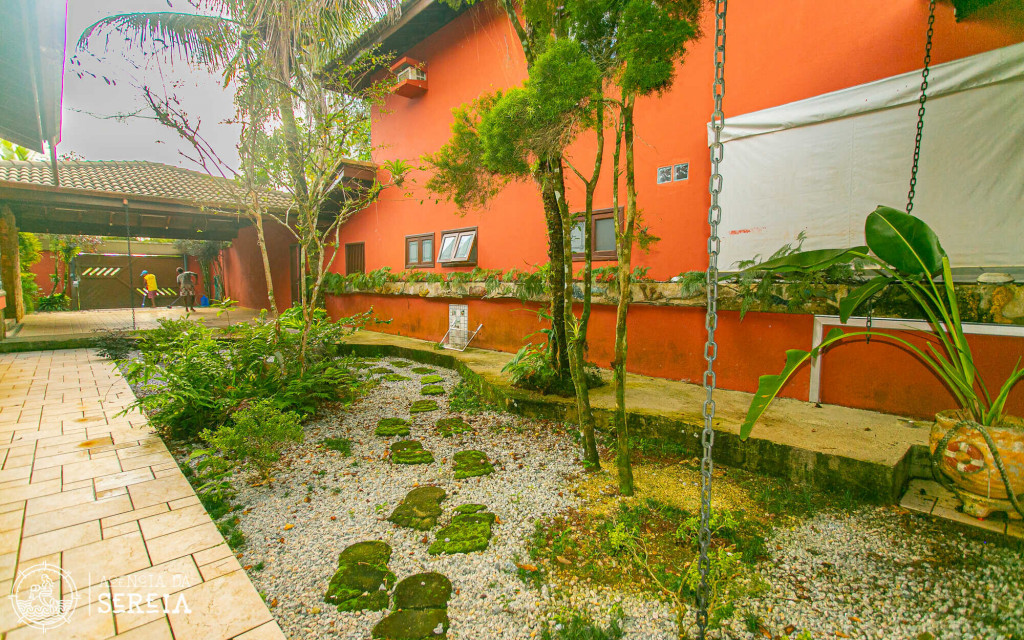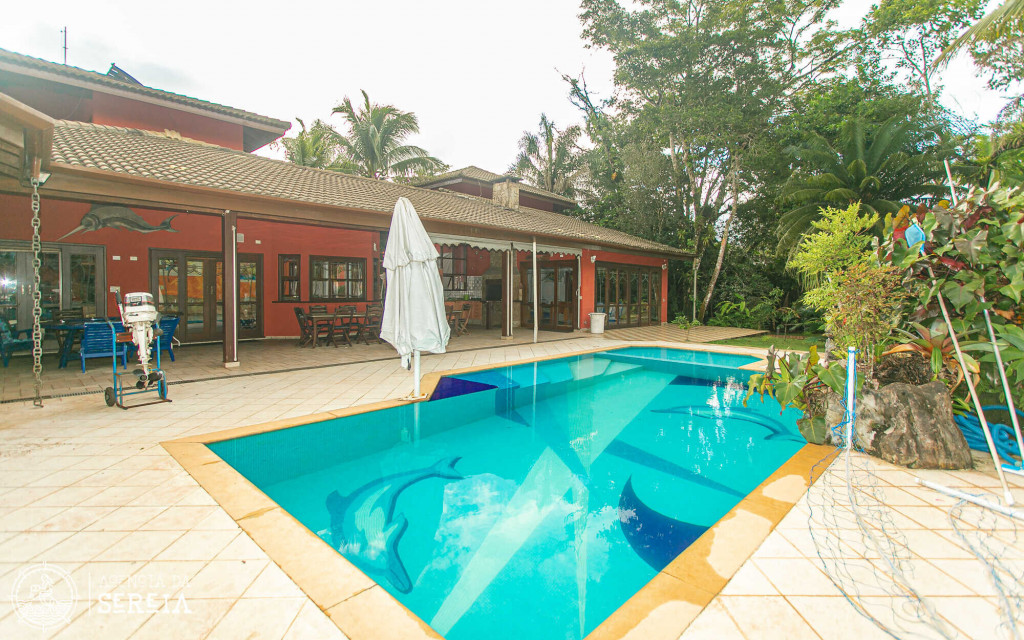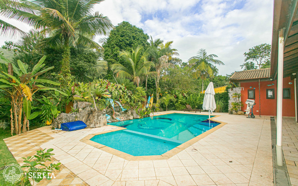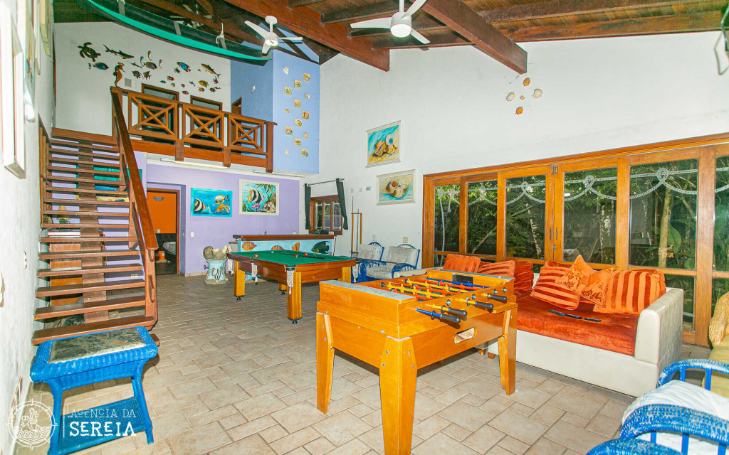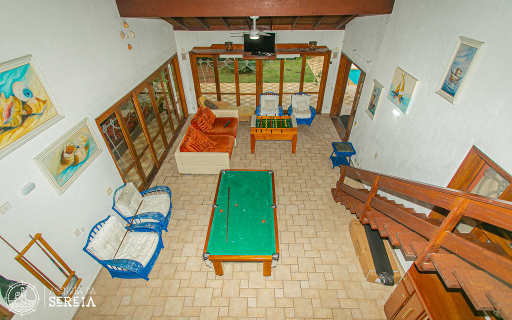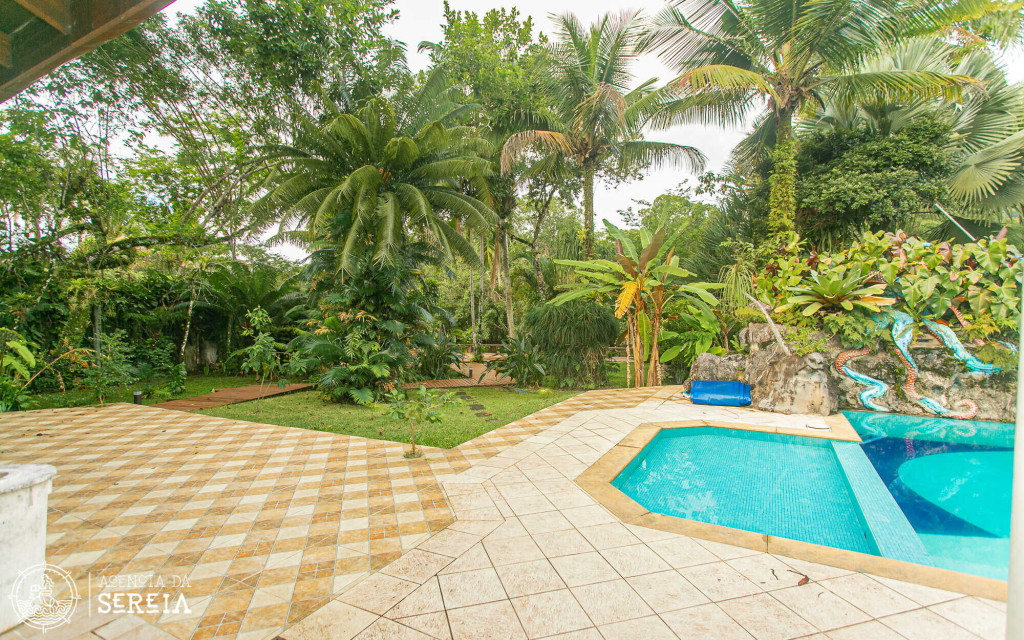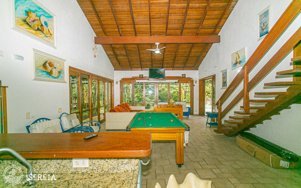 Tem capacidade para 22 pessoas em 8 quartos, cozinha totalmente equipada, sala de estar, piscina aquecida, spa com hidromassagem, salão de jogos com mesa de bilhar e de pebolim, cama elástica e um jardim maravilhoso com lago de carpas com deck privativo. Também estão disponíveis caiaque e canoa para usar no rio!