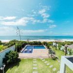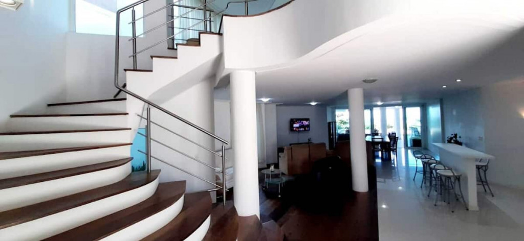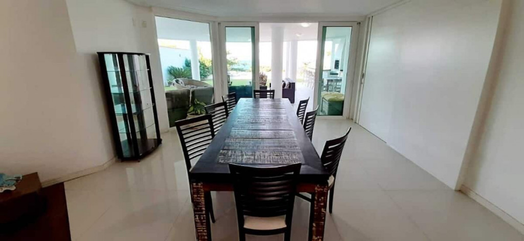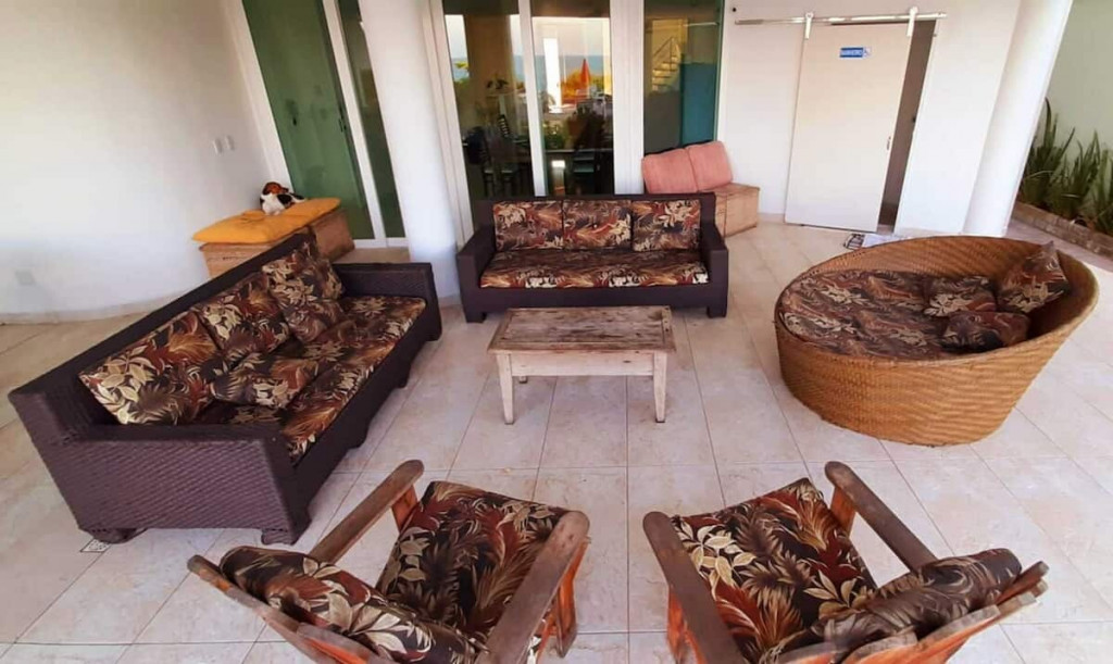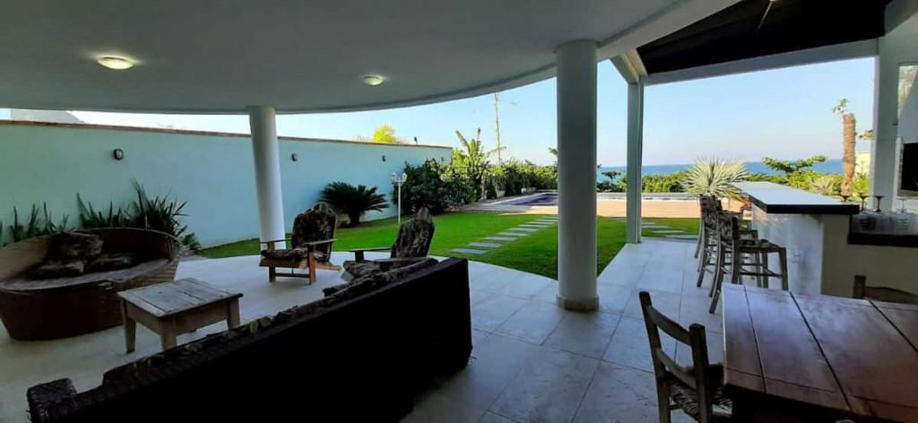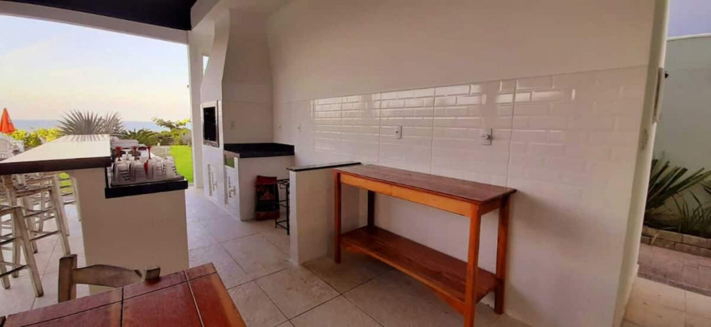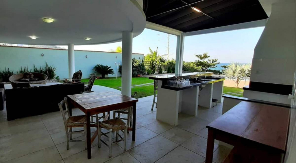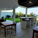 Varanda gourmet com churrasqueira carvão, 03 (três) banheiros sendo um preparado para cadeirante com ducha, jardim grande com piscina e acesso direto ao Mar.