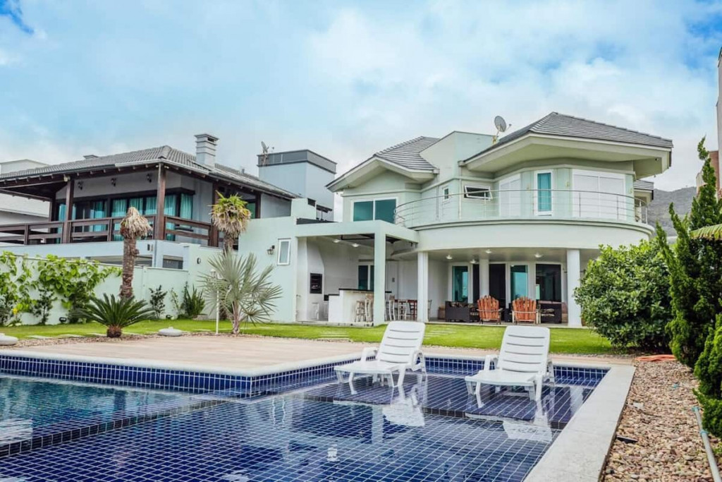 Casa de frente para o mar na praia do Estaleirinho composta de três pavimentos.