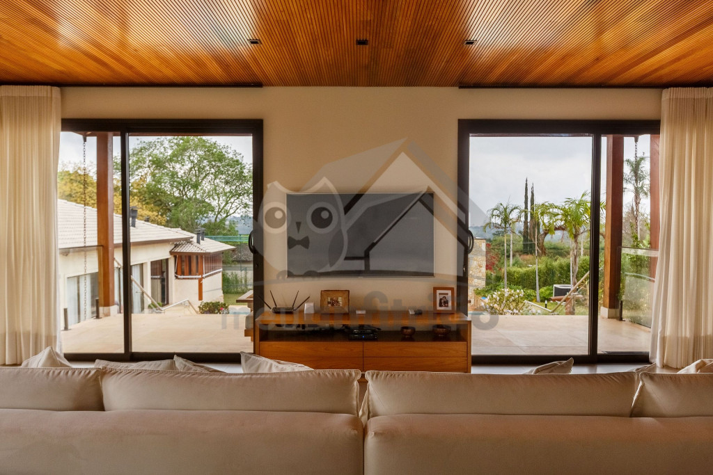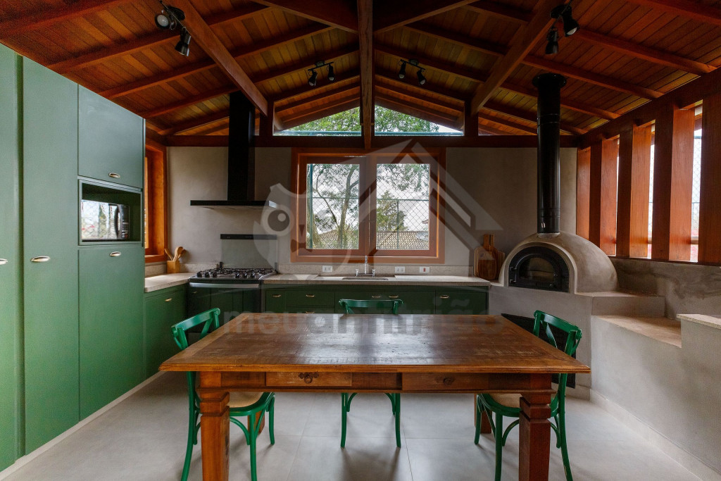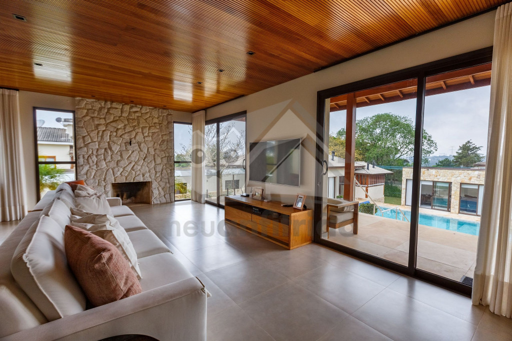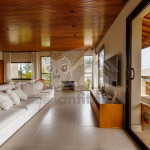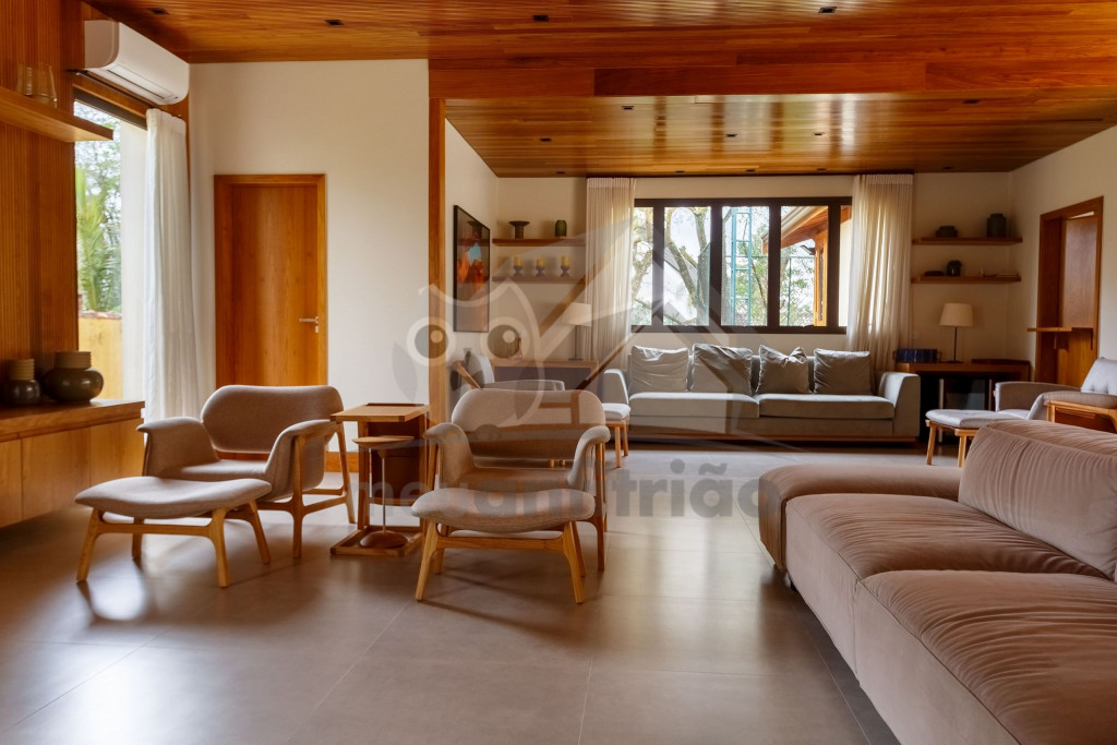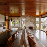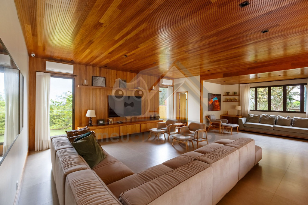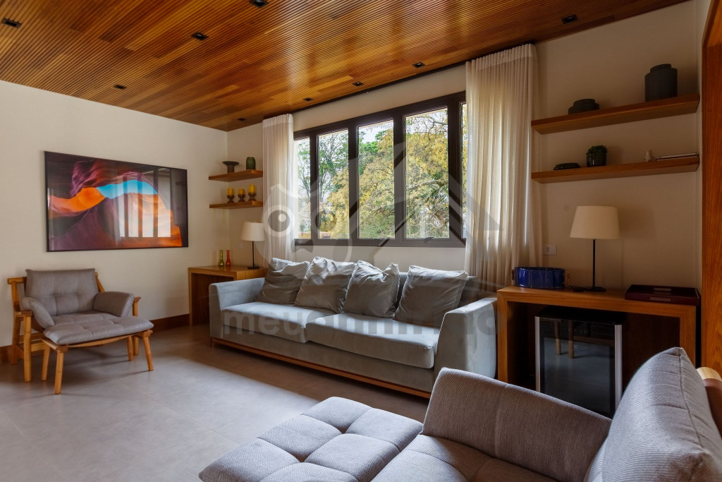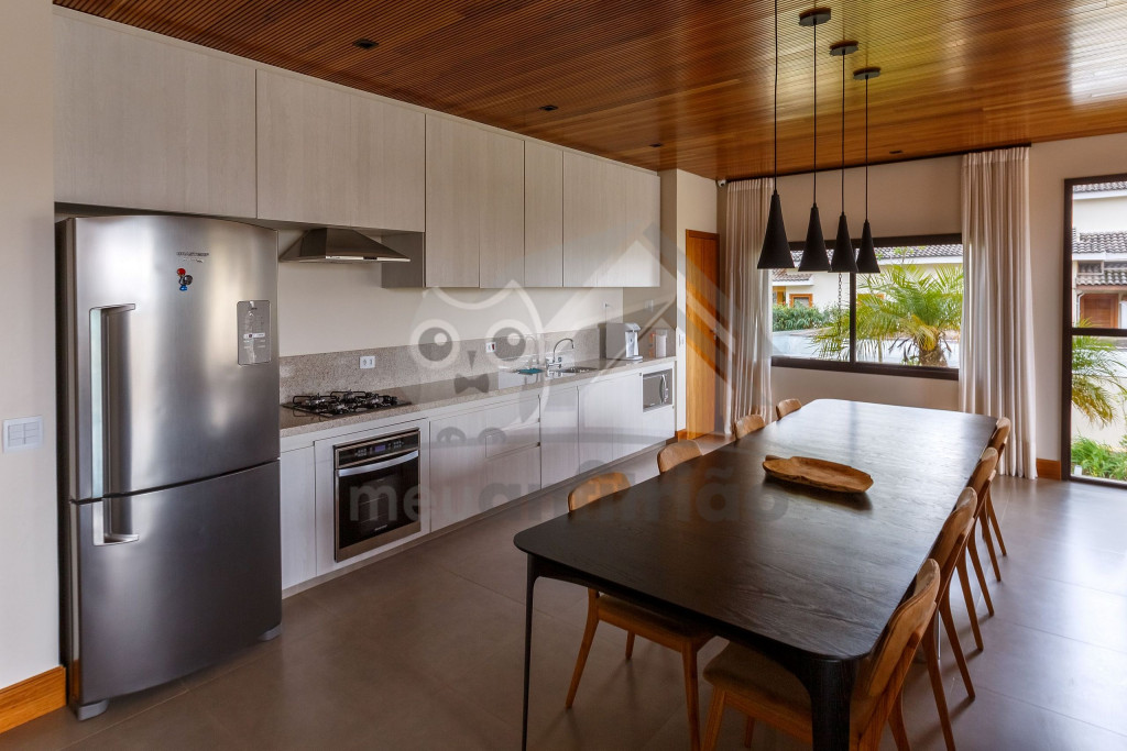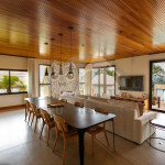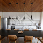 Além dos quartos, área interna conta com ampla sala e cozinha em conceito aberto com teto de madeira que traz conforto e sofisticação ao ambiente.