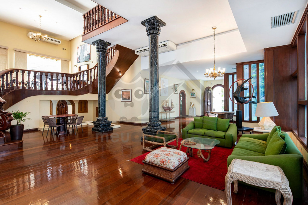 Nosso imóvel fica em localização privilegiada, à beira da lagoa, com vista para o mar de ambos os lados da praia da Barra da Tijuca e das áreas de preservação ecológica. Além disso, ostentando um ar colonial e nobre, contamos com quatro andares compostos por oito salas espaçosas, oito suítes dispostas entre camas Queen e King-Size, com armários embutidos, TV a cabo, frigobares nos quartos, ar-condicionado, banheiros ou hidromassagens. Temos também uma suíte de solteiro com ventilador, escritório equipado com ar-condicionado, e três cozinhas completas. Para manter-se conectado, oferecemos Wi-Fi de ótima qualidade em todos os cômodos.