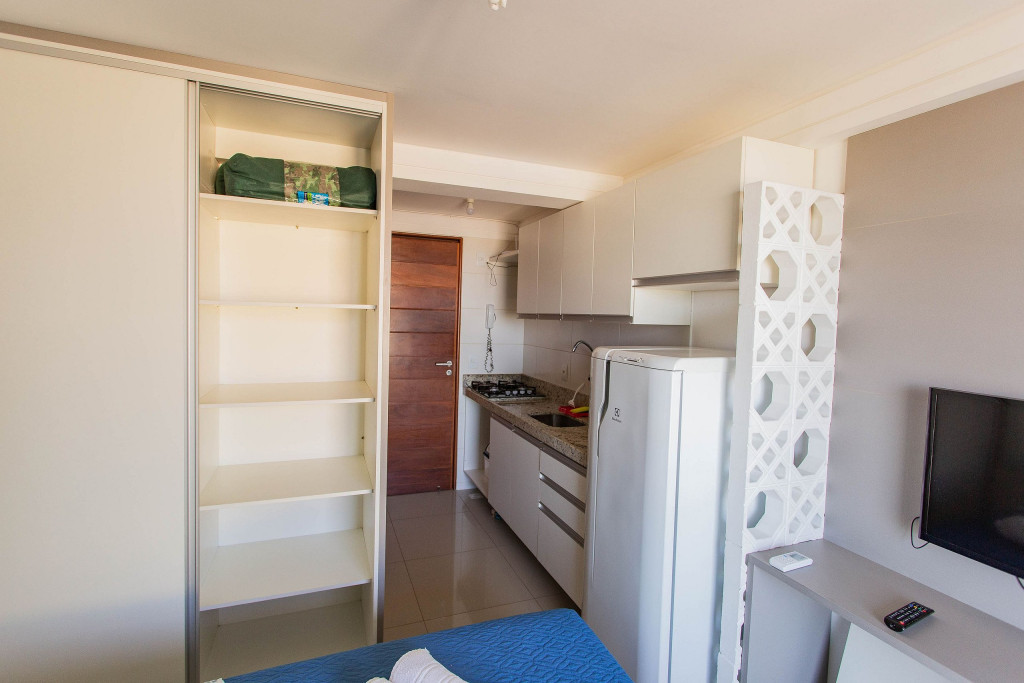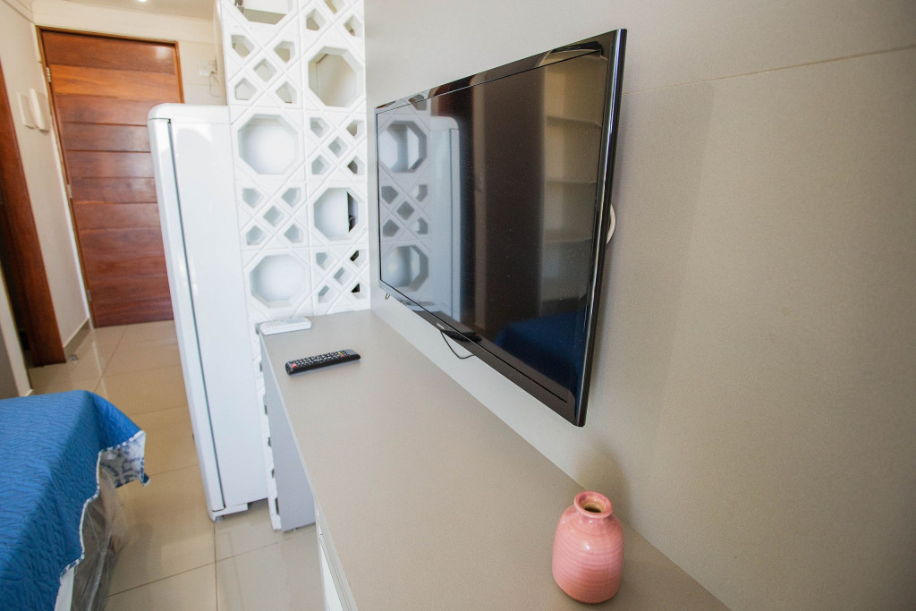 Localizado em uma das mais lindas praias de Cabedelo o flat Mar Bello Plaza - By Almare Flats é completo com Cama casal (lençóis e toalhas) roupeiro, TV, banheiro, copa de apoio com itens para refeições rápidas, frigobar e uma pequena varanda com uma bela vista para o mar.