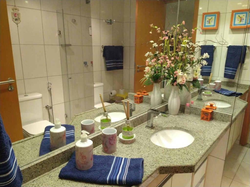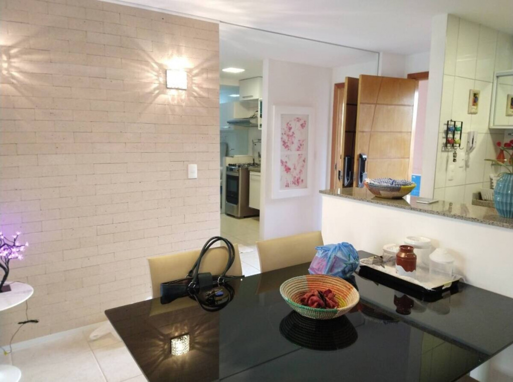 O apartamento possui 3 quartos com armários, sendo 1 suíte com cama Queen ar condicionado split e TV LCD, wc social, 2° qto cama Queen ar condicionado split, TV LCD, armários e 3° qto cama solteiro, Split e armários. Totalmente mobiliado, salas de jantar e estar com sofá e TV LCD, varanda gourmet com jardim , cozinha completa com utensílios domésticos e armários, área de serviço com armários embutidos.