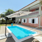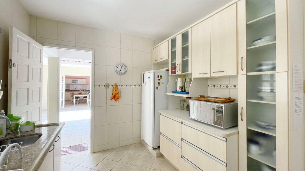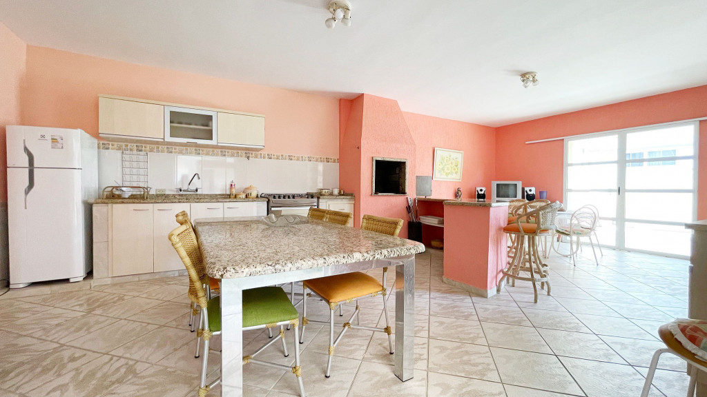 Nos fundos do sobrado, há uma edícula com uma cozinha completa, incluindo micro-ondas, fogão, geladeira, pia, televisão LED e ar condicionado (18 mil BTU's). Além disso, você encontrará uma churrasqueira, uma sala de estar e um amplo quintal com uma linda piscina, onde poderá aproveitar momentos ao ar livre e se refrescar e vaga de garagem tem capacidade para aproximadamente 5 veículos.