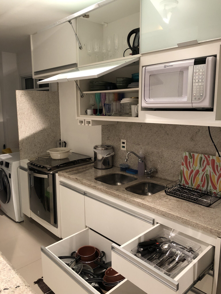 Apartamento decorado clean e confortável. Com todos os equipamentos necessários para o bem estar. Ar condicionado no quarto e na sala. Fogão, forno, microondas, cafeteira italiana, máquina de lavar e secar roupa e todos os utensílios de cozinha.