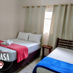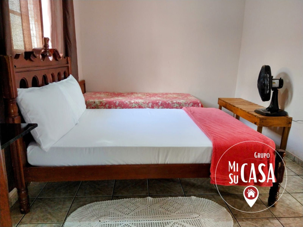 MiCasa SuCasa Temporada. 4 Quartos com ventilador 1 suite 1 Camas de Casal 1 Sofá Cama Casal 1 Banheiros Áreas Comuns: Cozinha com utensílios, Geladeira Fogão com forno, Sanduicheira Liquidificador. 2 Mesas com 4 Cadeiras Lavanderia com maquina de lavar. Varanda com Rede Garagem privativa 2 carros Sala com TV Smart 32, sofá cama Espaço Home Office Internet WiFi