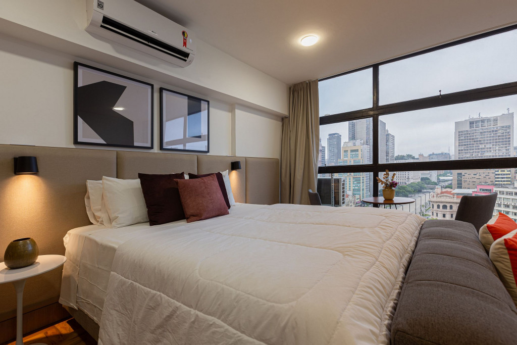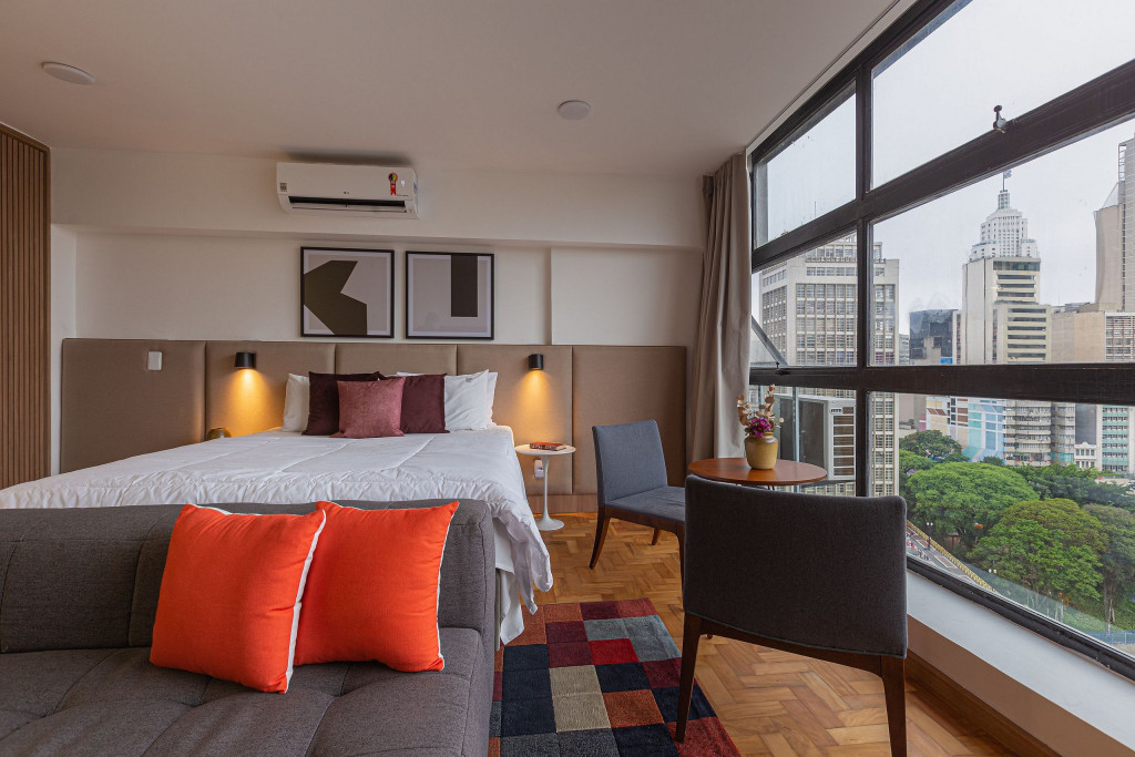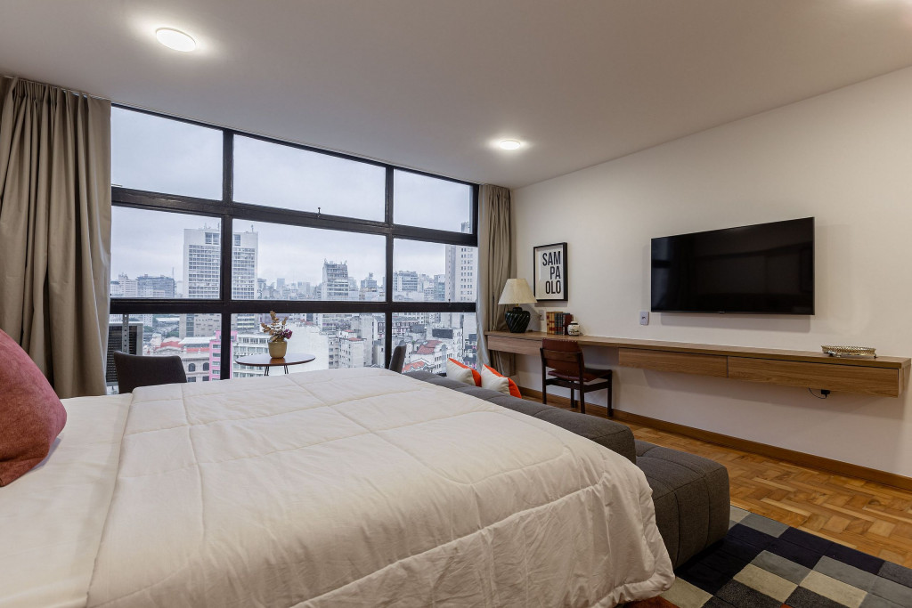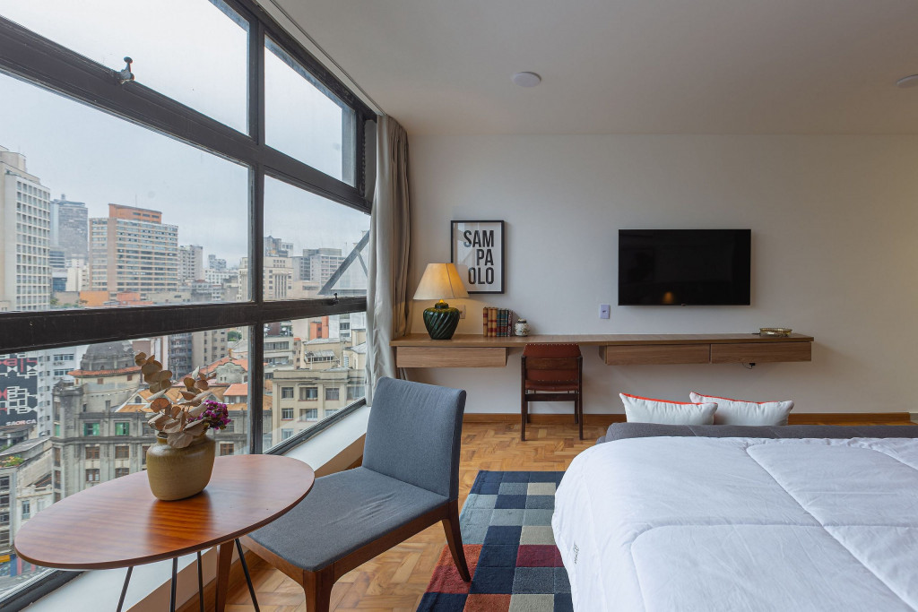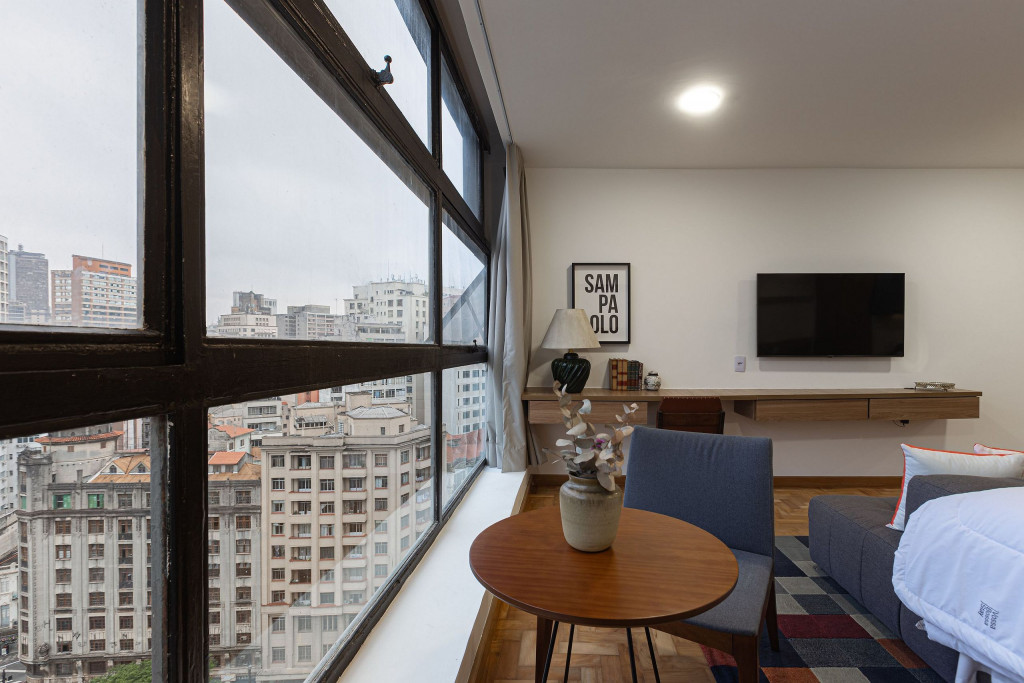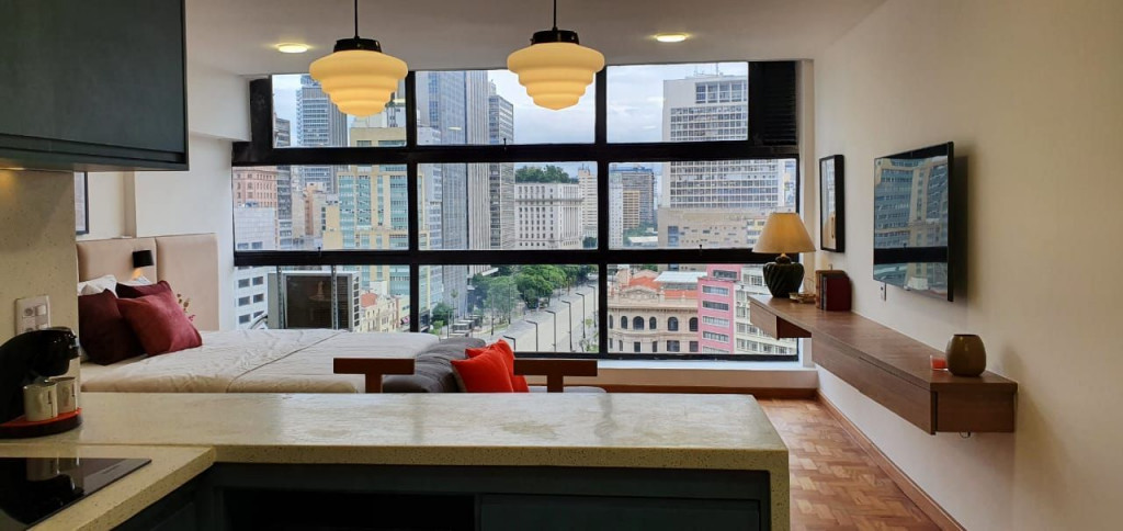Recém reformado studio com uma incrível vista do janelão do 20 andar de um dos Edifícios mais altos da cidade, o Mirante do Vale, onde pode-se ver quase a cidade toda e ao fim do horizonte, com vista para o Vale do Anhangabaú.