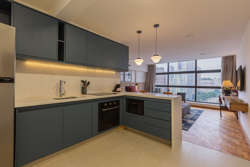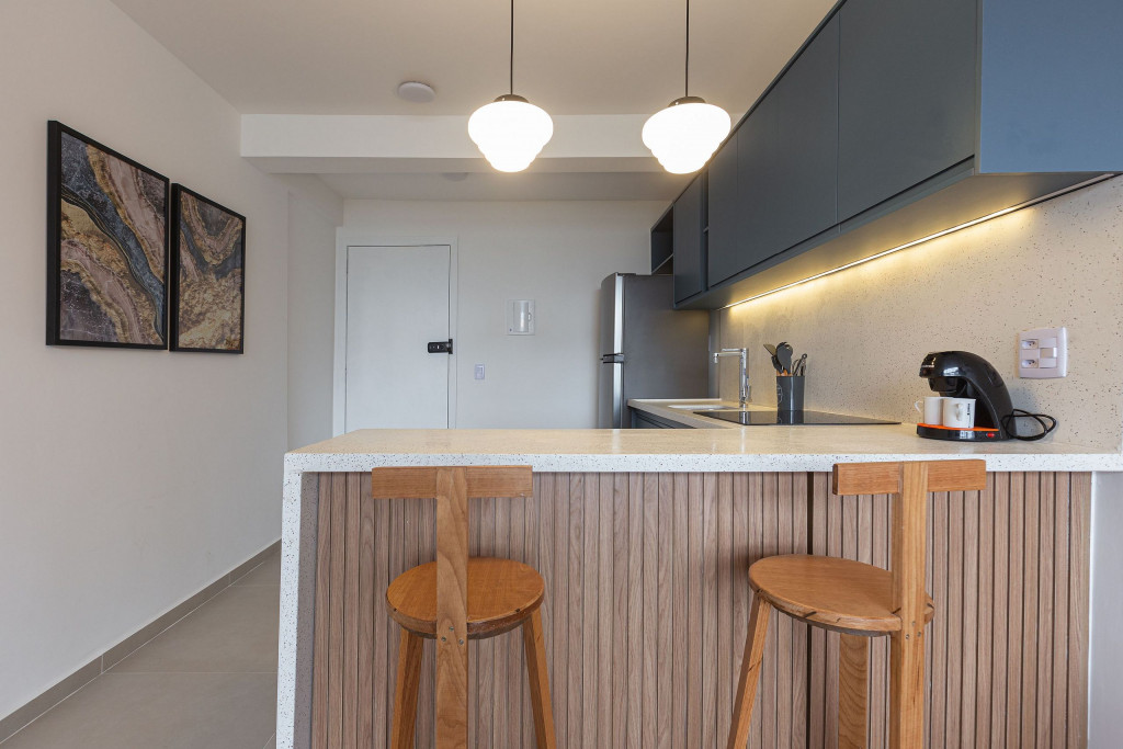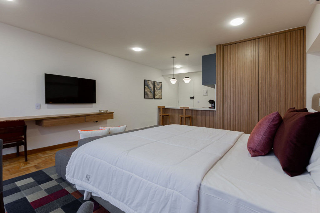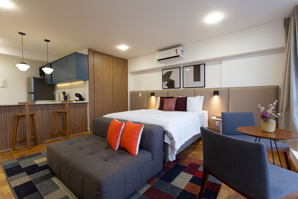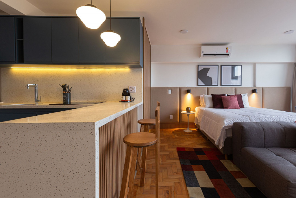 A vista do apartamento é de tirar o fôlego que, aliada a um projeto arquitetônico diferenciado e diversos detalhes em sua decoração, traz uma experiência única para os hóspedes.