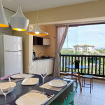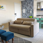 Luxuoso apartamento no VG Sun Cumbuco, 2 quartos (sendo 1 suíte) de 62 mts, localizado no 2o andar, decorado pensando nos seus dias de descanso. Perfeito para descansar após um dia de praia ou na enorme piscina do complexo. O apartamento possui 2 quartos, sendo: Suíte Master - Cama Queen, armários, TV e Ar-Condicionado. O outro quarto possui 2 camas de solteiro box, com ar-condicionado, TV e armários. Sala com decoração moderna, sofá cama casal e TV Smart. A cozinha é super completa, máquina de lavar roupas, temos Wi-Fi de alta velocidade e oferecemos roupas de cama e banho. A varanda é conjugada com a sala, com cortina de vidro e linda vista lateral do mar e piscina.