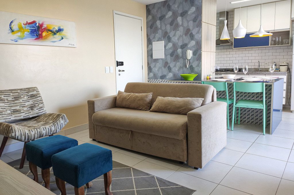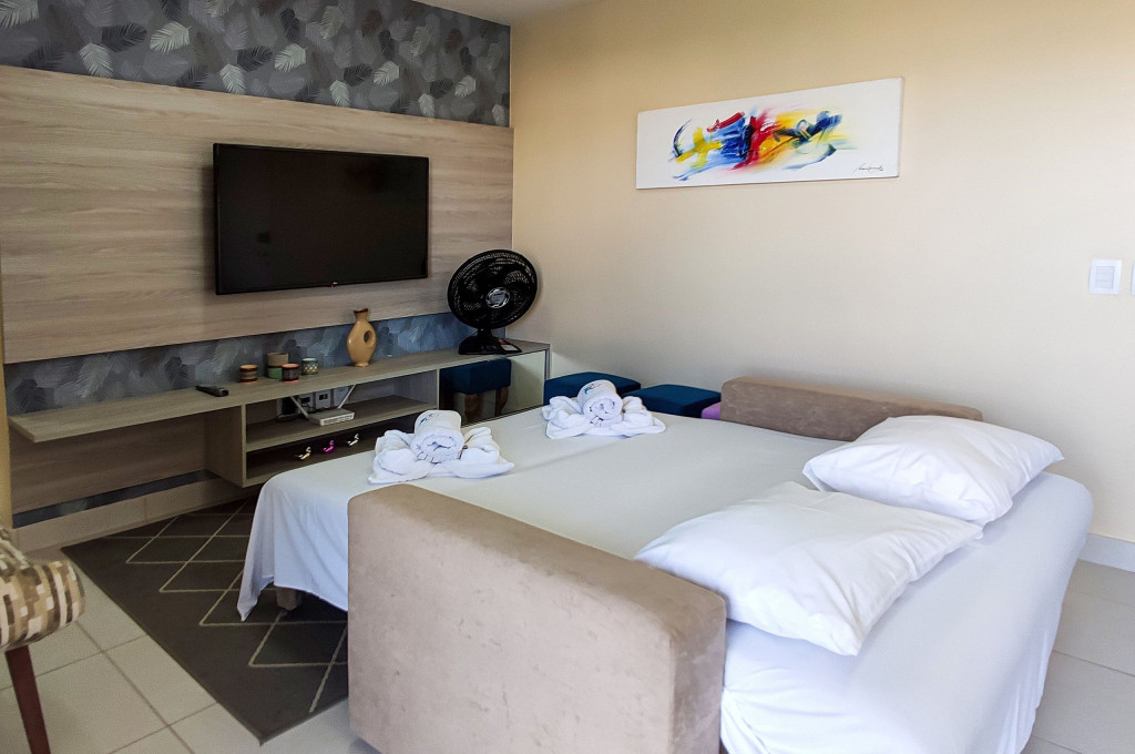 - Sala com Sofá Cama e TV Smart
