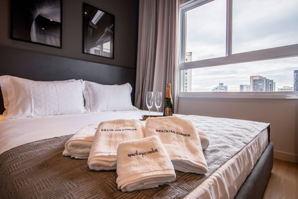 SALA: - Varanda integrada com vista para a cidade: Desfrute de uma paisagem deslumbrante de São Paulo. Imagine acordar todas as manhãs e aproveitar de sua varanda a beleza desta cidade. - Smart TV de 43 polegadas: Relaxe e desfrute de uma ampla variedade de entretenimento, no sofá da sala, com nossa Smart TV de alta definição. Assista aos seus filmes e programas favoritos com qualidade excepcional. - Sofá-cama: Com um simples movimento, o sofá-cama se converte em uma superfície ampla e agradável para uma noite de sono tranquila. Seus mecanismos de abertura e fechamento são fáceis de usar, permitindo uma transição suave entre as duas funções, é uma opção prática para acomodar vocês durante a noite. - Ar condicionado: Mantenha-se fresco e confortável durante toda a sua estadia. Nosso imóvel possui ar condicionado para garantir uma temperatura agradável em todos os ambientes. - Internet Ultra-Veloz: Mantenha-se conectado com o mundo durante sua estadia. Oferecemos acesso à internet de alta velocidade para que você possa compartilhar suas experiências e manter-se atualizado em todos os ambientes. - Mesa de Jantar para 2 pessoas: Compartilhe momentos especiais com amigos e familiares. Nossa mesa de jantar comporta até 2 pessoas, proporcionando um ambiente perfeito para refeições memoráveis. - Fechadura Digital: Priorizamos sua segurança e tranquilidade. Nossa locação conta com uma fechadura digital de alta tecnologia, proporcionando praticidade e evitando a preocupação com chaves. QUARTO: Cada quarto em nossos imóveis são cuidadosamente decorados e mobiliados, oferecendo conforto e privacidade para todos os inquilinos. - Cama Queen-Size: Relaxe e recarregue suas energias em uma cama queen size confortável. Garantimos noites tranquilas e revigorantes para que você possa aproveitar ao máximo cada segundo de seu sono. - Guarda-Roupa: Nosso imóvel oferece um guarda-roupa amplo, permitindo que você organize suas roupas e pertences com facilidade. Desfaça as malas e sinta-se verdadeiramente em casa. - Ar condicionado: Mantenha-se fresco e confortável durante toda a sua estadia. Nosso imóvel possui ar condicionado para garantir uma temperatura agradável em todos os ambientes. - Cortinas blackout: Uma boa noite de sono é essencial. Por isso, em todos os quartos da nossa locação, você encontrará cortinas blackout, garantindo um ambiente escuro e silencioso para um descanso revigorante. COZINHA: Nossa cozinha está muito bem equipada. Prepare deliciosas refeições na nossa cozinha completa e moderna. Equipada com todos os utensílios e eletrodomésticos necessários, você terá liberdade para explorar suas habilidades culinárias. - Taças de vinho: Brinde momentos memoráveis com taças de vinho prontas para receber suas celebrações. - Fogão: Sinta-se em casa na nossa cozinha, completa com um moderno fogão, proporcionando a flexibilidade para preparar suas refeições favoritas. Seja um mestre culinário ou alguém que gosta de experimentar novos sabores, você terá tudo o que precisa à sua disposição. - Máquina Nespresso: Desperte seus sentidos com uma xícara de café fresco todas as manhãs. Em nossa locação, disponibilizamos uma máquina Nespresso para que você possa apreciar a sua bebida preferida. No entanto, é necessário trazer suas próprias cápsulas de café, pois não fornecemos. BANHEIRO: - Secador de Cabelo: Para sua conveniência, disponibilizamos um secador de cabelo de qualidade em nosso imóvel. Dessa forma, você não precisa se preocupar em trazer o seu, permitindo que você viaje mais leve e confortável. - Chuveiro à Gás: Proporcionando conforto em todos os detalhes, nossos chuveiros são abastecidos com sistema à gás, garantindo um banho quente e relaxante em qualquer momento do dia. LAVANDERIA: - Máquina lava e seca: Mantenha suas roupas limpas e frescas durante toda a estadia com nossa máquina lava e seca. ÁREA COMUM: - Vaga de garagem: Oferecemos uma vaga de garagem para sua comodidade e segurança, garantindo que você tenha um local seguro para estacionar seu veículo. - Academia: Mantenha-se em forma durante sua estadia com acesso à nossa academia bem equipada. A variedade de equipamentos disponíveis permite realizar uma ampla gama de exercícios e treinamentos, atendendo às necessidades e preferências individuais. - Piscina: Refresque-se e relaxe em nossa piscina, proporcionando momentos de lazer e diversão. A disponibilidade de uma piscina é um benefício significativo. A piscina proporciona momentos inesquecíveis de lazer e relaxamento. ADMINISTRAÇÃO DO IMÓVEL: O Imóvel é administrado pela Brazilian Corner, uma empresa nacional que oferece aos seus clientes, que viajam a lazer ou negócios, a experiência de locar imóveis únicos durante uma temporada. As residências são planejadas para prover grande conforto. Nosso escritório fica no bairro Vila Madalena em São Paulo. Desde 2018, a Brazilian Corner é pioneira em seu ramo, pois além de proporcionar imóveis bem estruturados, também é responsável por toda a logística e suprimentos básicos que compõe cada uma de suas residências, o que as torna extremamente funcionais. Nosso grande diferencial é a boa comunicação e a seriedade com que atuamos para resolver qualquer entrave que possa acontecer antes, durante, e/ou após a estadia de nossos clientes. Nossos colaboradores são treinados e têm as ferramentas necessárias para proporcionar um excelente nível de serviço. Os apartamentos e casas são limpos por nossas equipes especializada, a nossa roupa de cama e banho são lavadas e higienizadas em lavanderias profissionais. Mantemos o profissionalismo em tudo o que fazemos para, dessa forma, garantir a tranquilidade e confiança de nossos clientes. COMPROMISSO COM A INCLUSÃO: Na Brazilian Corner, acreditamos que a diversidade é o que torna o mundo um lugar incrível para explorar. Celebramos a pluralidade de culturas, id