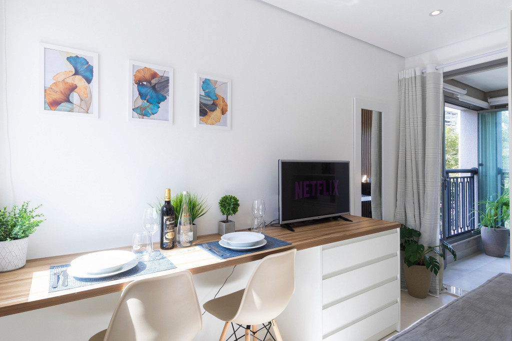 - Varanda com cadeira e mesa para trabalhar: Aproveite e trabalhe com a melhor vista, relaxe enquanto realiza suas tarefas ao ar livre.- Ar condicionado: Mantenha-se fresco e confortável durante toda a sua estadia. Nosso imóvel possui ar condicionado para garantir uma temperatura agradável em todos os ambientes.