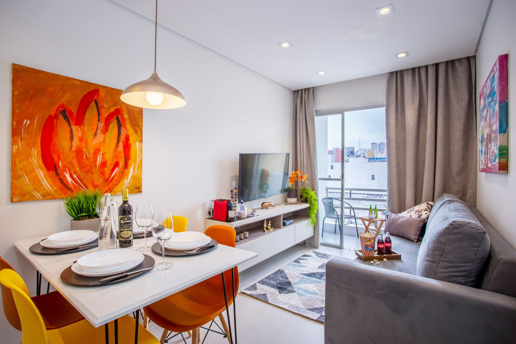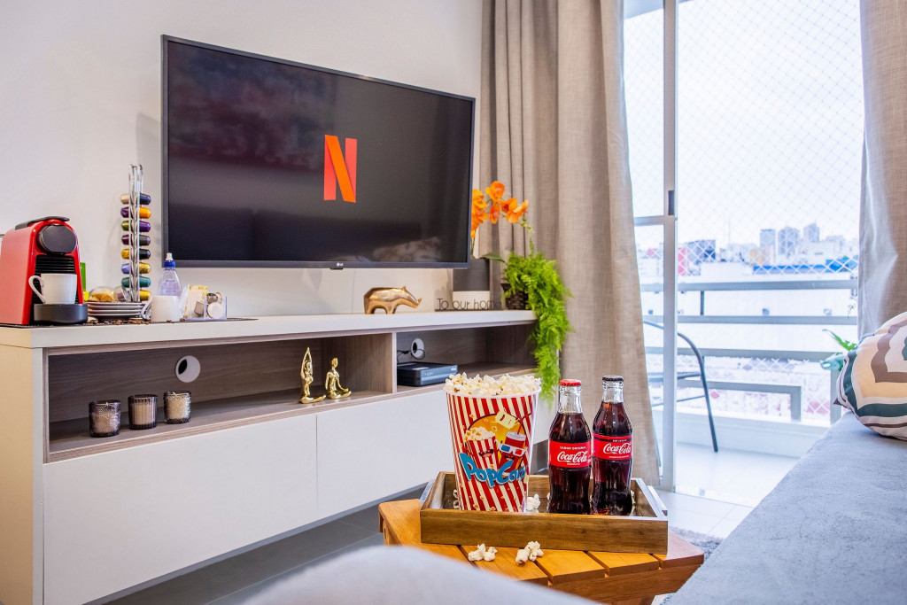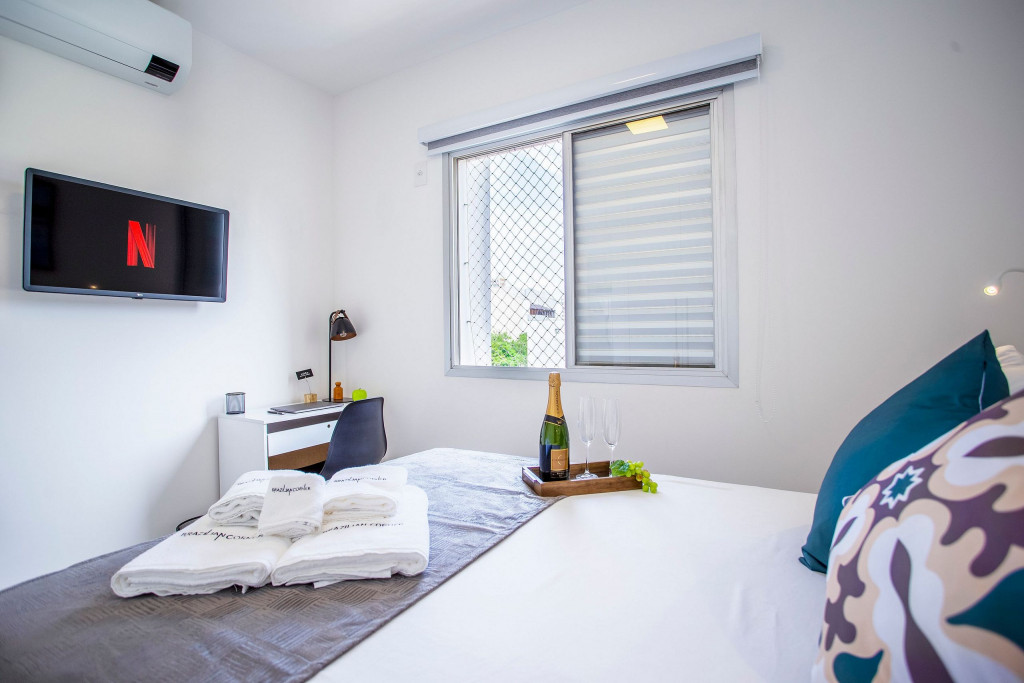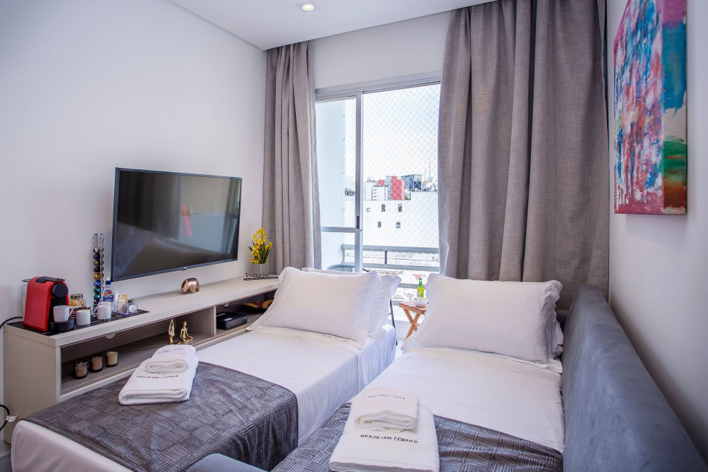 SALA: - Rede de Proteção nas Janelas: Sua tranquilidade é nossa prioridade. Nossas janelas têm redes de proteção para garantir a segurança de crianças e adultos. - Varanda com vista para a cidade: Desfrute de uma paisagem deslumbrante de São Paulo. Imagine acordar todas as manhãs e aproveitar de sua varanda a beleza desta cidade. - Smart TV de 40 polegadas: Relaxe e desfrute de uma ampla variedade de entretenimento, no sofá da sala, com nossa Smart TV de alta definição. Assista aos seus filmes e programas favoritos com qualidade excepcional. - Sofá-cama: Com um simples movimento, o sofá-cama se converte em uma superfície ampla e agradável para uma noite de sono tranquila. Seus mecanismos de abertura e fechamento são fáceis de usar, permitindo uma transição suave entre as duas funções, é uma opção prática para acomodar vocês durante a noite. - Ventilador de teto: Mantenha-se fresco e confortável durante toda a sua estadia. Nosso imóvel possui ventilador de teto para garantir uma temperatura agradável em todos os ambientes. - Internet Ultra-Veloz: Mantenha-se conectado com o mundo durante sua estadia. Oferecemos acesso à internet de alta velocidade para que você possa compartilhar suas experiências e manter-se atualizado em todos os ambientes. - Mesa de Jantar para 4 pessoas: Compartilhe momentos especiais durante sua estadia em torno de uma mesa aconchegante. Nossa mesa de jantar comporta até 4 pessoas, proporcionando um ambiente perfeito para refeições memoráveis. - Fechadura Digital: Priorizamos sua segurança e tranquilidade. Nossa locação conta com uma fechadura digital de alta tecnologia, proporcionando praticidade e evitando a preocupação com chave. QUARTO: Cada quarto em nossos imóveis são cuidadosamente decorados e mobiliados, oferecendo conforto e privacidade para todos os inquilinos. - Cama de Casal: Relaxe e recarregue suas energias em uma cama de casal confortável. Garantimos noites tranquilas e revigorantes para que você possa aproveitar ao máximo cada segundo de seu sono. - Smart TV de 32 polegadas: Relaxe e desfrute de uma ampla variedade de entretenimento, no sofá da sala, com nossa Smart TV de alta definição. Assista aos seus filmes e programas favoritos com qualidade excepcional. - Mesa de Trabalho: Seja para trabalhar remotamente, estudar ou apenas navegar na internet, nossa mesa de trabalho proporciona um espaço confortável e funcional. Mantenha-se produtivo durante suas férias ou viagens de negócios. - Guarda-Roupa: Nosso imóvel oferece um guarda-roupa amplo, permitindo que você organize suas roupas e pertences com facilidade. Desfaça as malas e sinta-se verdadeiramente em casa. - Ar condicionado: Mantenha-se fresco e confortável durante toda a sua estadia. Nosso imóvel possui ar condicionado para garantir uma temperatura agradável. COZINHA: Nossa cozinha está muito bem equipada. Prepare deliciosas refeições na nossa cozinha completa e moderna. Equipada com todos os utensílios e eletrodomésticos necessários, você terá liberdade para explorar suas habilidades culinárias. - Taças de vinho: Brinde momentos memoráveis com taças de vinho prontas para receber suas celebrações. - Fogão: Sinta-se em casa na nossa cozinha, completa com um moderno fogão, proporcionando a flexibilidade para preparar suas refeições favoritas. Seja um mestre culinário ou alguém que gosta de experimentar novos sabores, você terá tudo o que precisa à sua disposição. - Depurador de Ar: Mantenha o ambiente sempre fresco e agradável com o depurador de ar. Respire tranquilamente e desfrute de um ambiente livre de odores indesejados. - Máquina Nespresso: Desperte seus sentidos com uma xícara de café fresco todas as manhãs. Em nossa locação, disponibilizamos uma máquina Nespresso para que você possa apreciar a sua bebida preferida. No entanto, é necessário trazer suas próprias cápsulas de café, pois não fornecemos. - Microondas: Prepare suas refeições com praticidade e rapidez, tendo à disposição um micro-ondas moderno e funcional. BANHEIRO: - Secador de Cabelo: Para sua conveniência, disponibilizamos um secador de cabelo de qualidade em nosso imóvel. Dessa forma, você não precisa se preocupar em trazer o seu, permitindo que você viaje mais leve e confortável. - Chuveiro Elétrico: Proporcionando conforto em todos os detalhes, garantindo um banho quente e relaxante em qualquer momento do dia. LAVANDERIA: - Máquina lava e seca: Mantenha suas roupas limpas e frescas durante toda a estadia com nossa máquina lava e seca. ÁREA COMUM: - Vaga de garagem: Oferecemos uma vaga de garagem para sua comodidade e segurança, garantindo que você tenha um local seguro para estacionar seu veículo. - Piscina: Mergulhe, relaxe e aproveite a nossa piscina, oferecendo momentos de alegria e descontração. - Academia: Se manter ativo e saudável é importante para você, nossa academia moderna está pronta para atender às suas necessidades. Equipada com uma variedade de máquinas de qualidade, você poderá manter sua rotina de exercícios mesmo durante as férias. Mantenha-se em forma e cheio de energia durante toda a sua estadia. ADMINISTRAÇÃO DO IMÓVEL: O Imóvel é administrado pela Brazilian Corner, uma empresa nacional que oferece aos seus clientes, que viajam a lazer ou negócios, a experiência de locar imóveis únicos durante uma temporada. As residências são planejadas para prover grande conforto. Nosso escritório fica no bairro Vila Madalena em São Paulo. Desde 2018, a Brazilian Corner é pioneira em seu ramo, pois além de proporcionar imóveis bem estruturados, também é responsável por toda a logística e suprimentos básicos que compõem cada uma de suas residências, o que as torna extremamente funcionais. Nosso grande diferencial é a boa comunicação e a seriedade com que atuamos para resolver qualquer entrave que possa acontecer antes, durante, e/ou após a estadia de nossos cliente