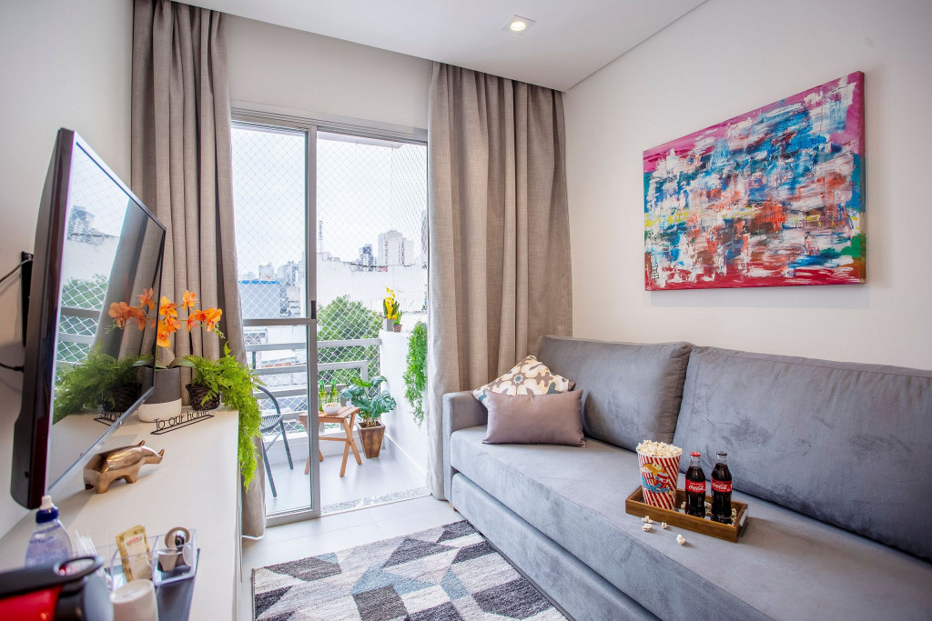 O apartamento aconchegante e completo de 36m², localizado na Bela Vista, está situado em um bairro nobre e cultural. Tendo o espaço ideal para uma estadia na cidade de São Paulo, pois conta com fechadura digital, duas Smart TV's de 32" e 40", ventilador de teto, internet ultra-veloz, mesa de trabalho, rede de proteção nas janelas e varanda, cozinha completa, máquina lava e seca. O banheiro conta também com um ótimo secador de cabelo. O prédio disponibiliza estacionamento, piscina e academia.