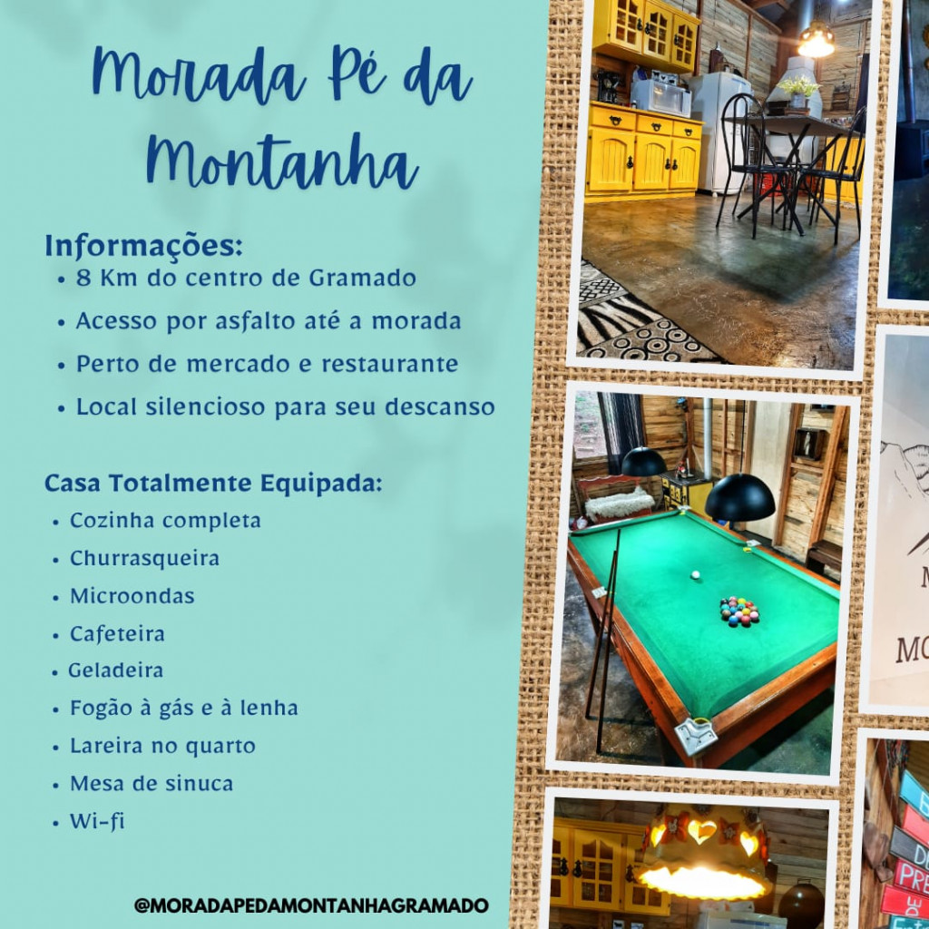 Relaxe neste espaço calmo e cheio de estilo. Essa charmosa Morada é ideal para quem procura descansar em meio á natureza sem abrir mão de estar na sonhada cidade de Gramado. Há aproximadamente 6km da área central, você estará no Pé da Montanha, com vista para o vale, onde o sol chega mais cedo.