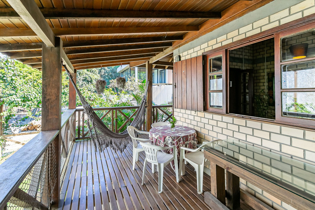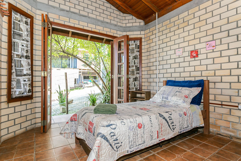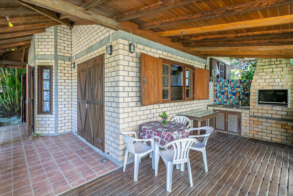 Uma bela morada situada em meio a natureza, ideal para descansar ou confraternizar com amigos. A casa é bem arejada e ensolarada, dois quartos (um quarto com ar condicionado), cozinha completa sala com lareira, banheiro com chuveiro elétrico e box. Um amplo deck com churrasqueira e rede, completam o charme do local. Piscina na área comumSpa de Hidromassagem com custo adicionalEstarei disponível para ajudá-los durante a estadia. A casa fica a 500 metros do centrinho do rosa, próximo de bares, restaurantes, supermercados e farmácias. Até a praia são 20 minutos de caminhada por trilha . O bairro é tranquilo, calmo e bastante seguro.