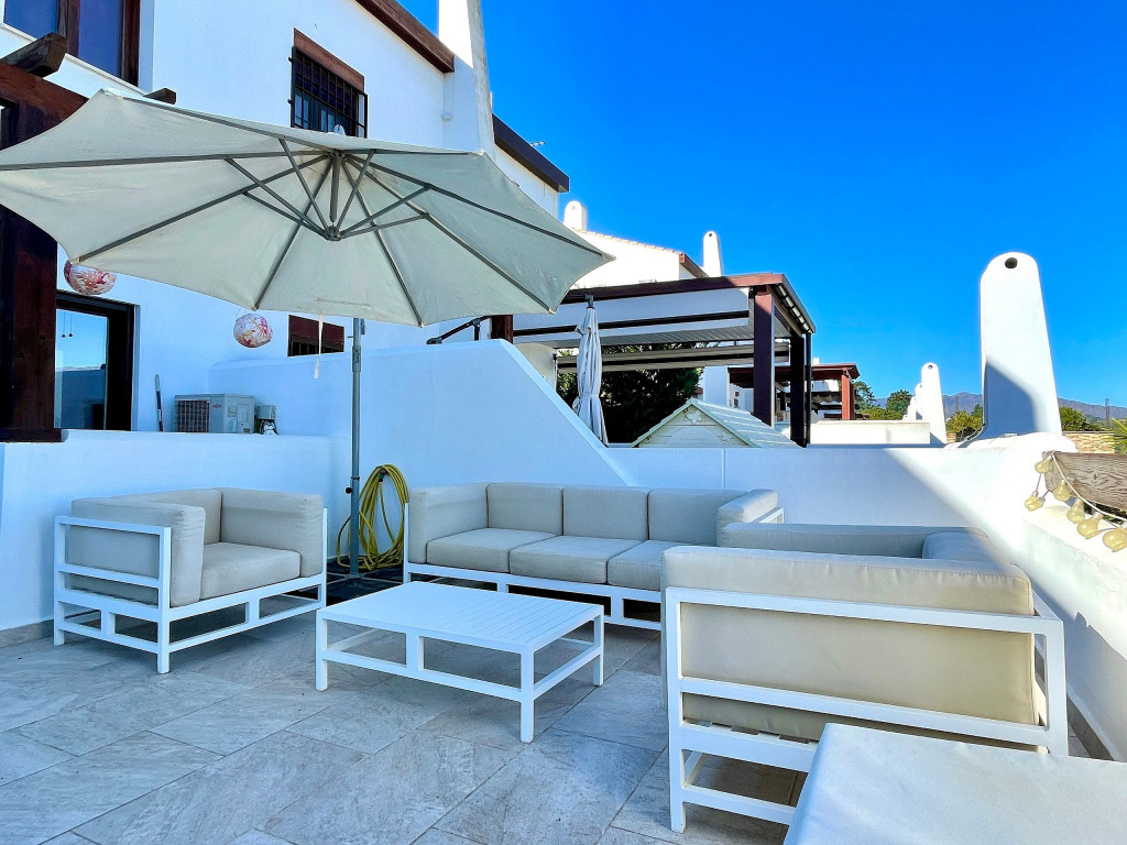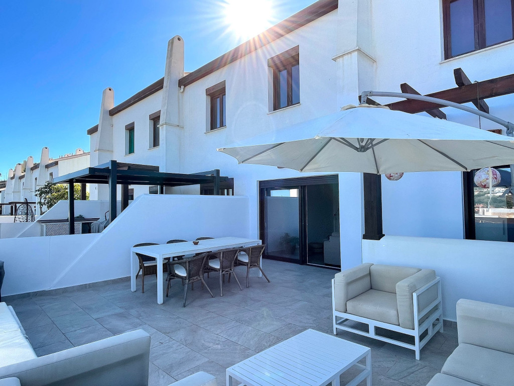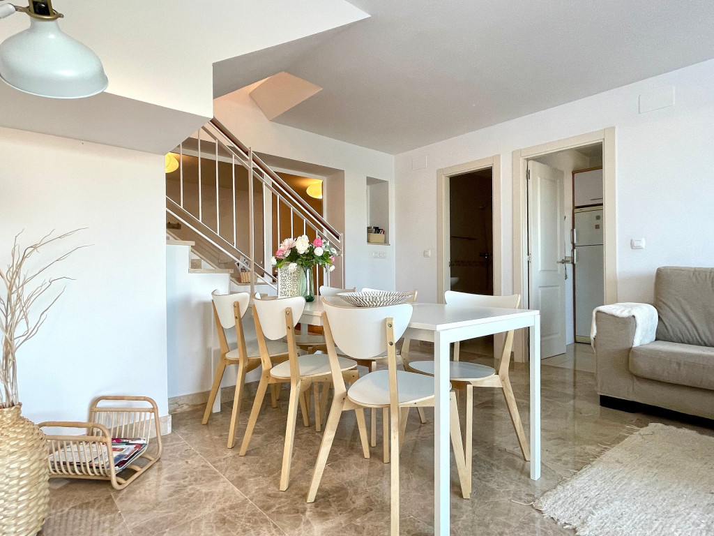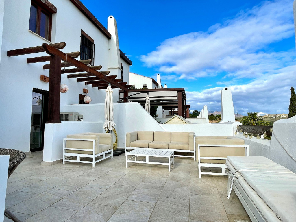 Uma moradia de férias de qualidade com vistas muito bonitas e um acolhedor terraço de 50m2 acessível tanto pela sala como pela cozinha. O terraço a nascente virado para a serra mas também com vista a sul com vista mar. Está localizado perto do campo de golfe La Noria e também de um driving range. Piscina comum com pequena piscina adicional para as crianças. Um pequeno playground externo e uma pequena academia externa nas proximidades da área da piscina também são oferecidos durante a estadia.