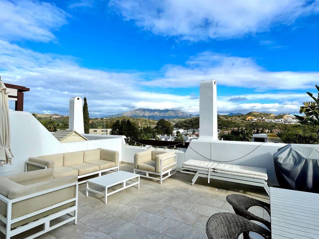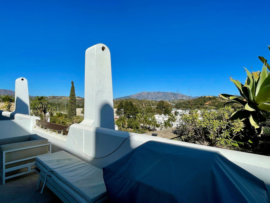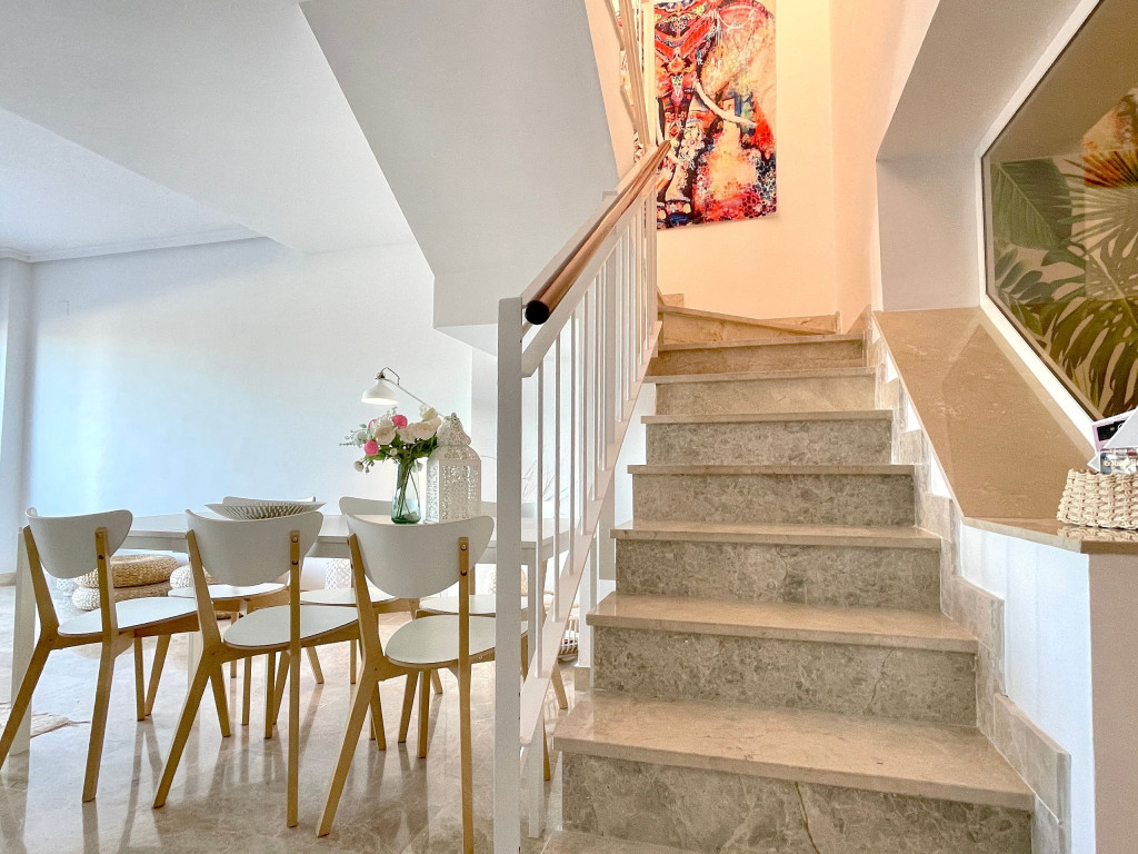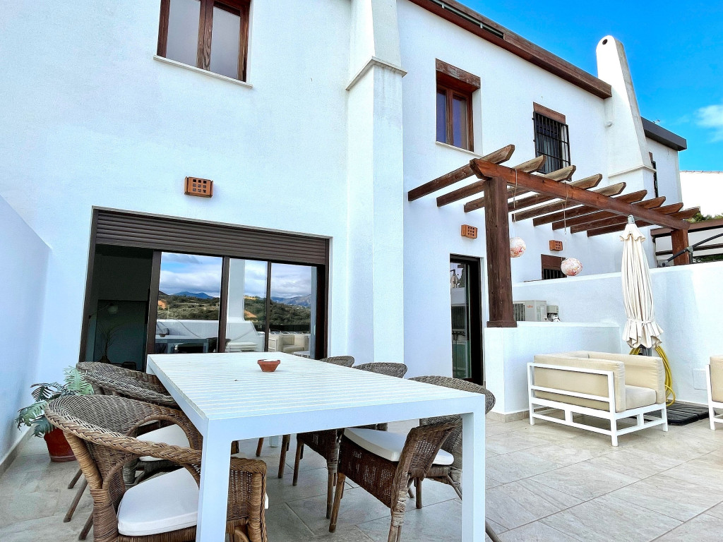 Uma moradia de férias de qualidade com vistas muito bonitas e um acolhedor terraço de 50m2 acessível tanto pela sala como pela cozinha. O terraço a nascente virado para a serra mas também com vista a sul com vista mar. Está localizado perto do campo de golfe La Noria e também de um driving range. Piscina comum com pequena piscina adicional para as crianças. Um pequeno playground externo e uma pequena academia externa nas proximidades da área da piscina também são oferecidos durante a estadia.
