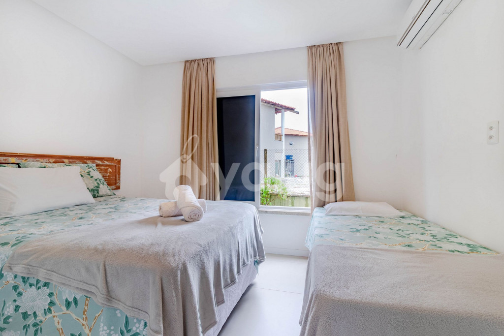 São 3 quartos aconchegantes, climatizados (2 no andar superior e 1 térreo), sala de estar, cozinha completa e uma ótima varanda para descanso.