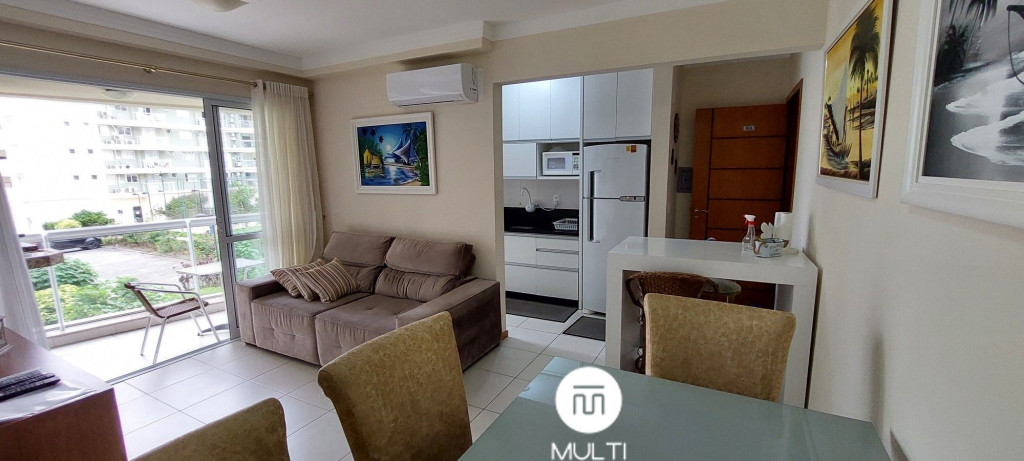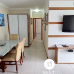 São 70 metros quadrados com varanda com churrasqueira, dois quartos climatizados, sendo uma suíte com TV smart, cozinha e sala integrados. A cozinha é equipada com fogão, forno à gás, geladeira, microondas e todos utensílios necessários para fazer uma boa refeição. A sala climatizada possui uma TV 32'''. Os quartos têm uma cama de casal cada. Fornecemos toalhas de banho, roupa de cama e travesseiros e cobertores. Possuímos Wi-Fi no apartamento (100 mega), além da internet oferecida pelo próprio condomínio e máquina de lavar roupas.