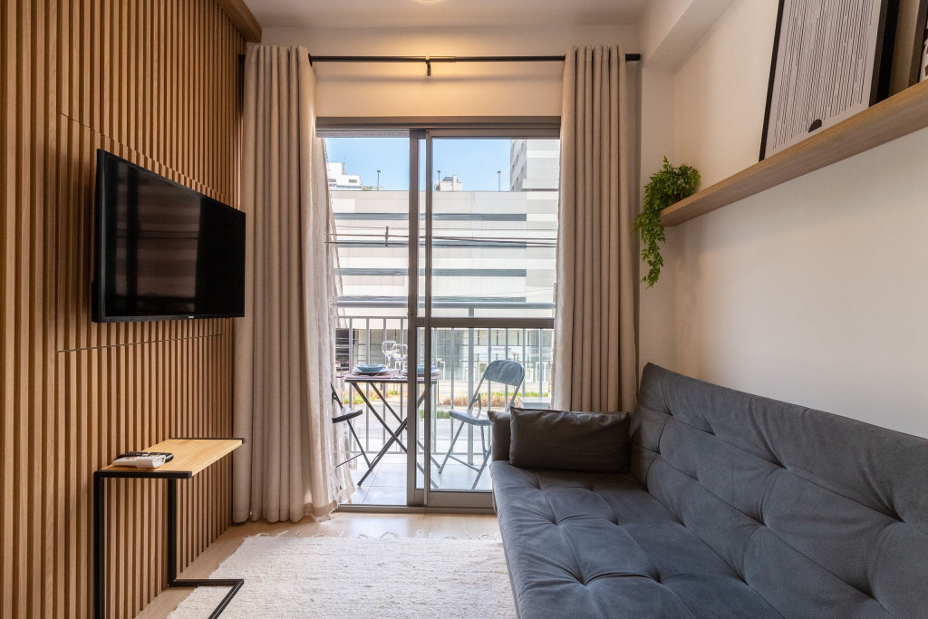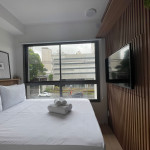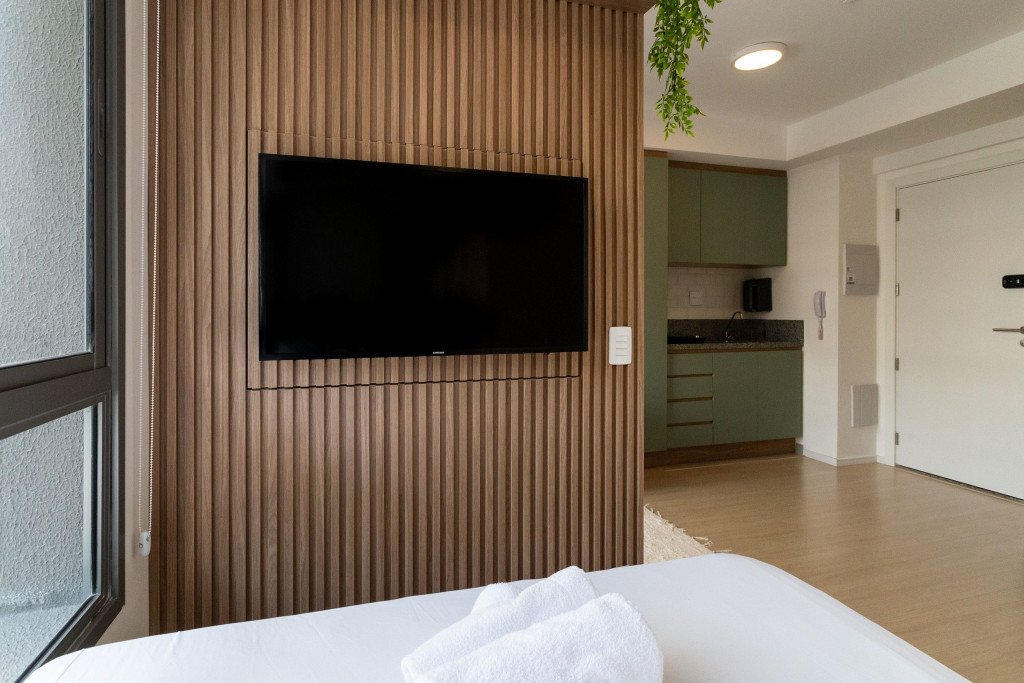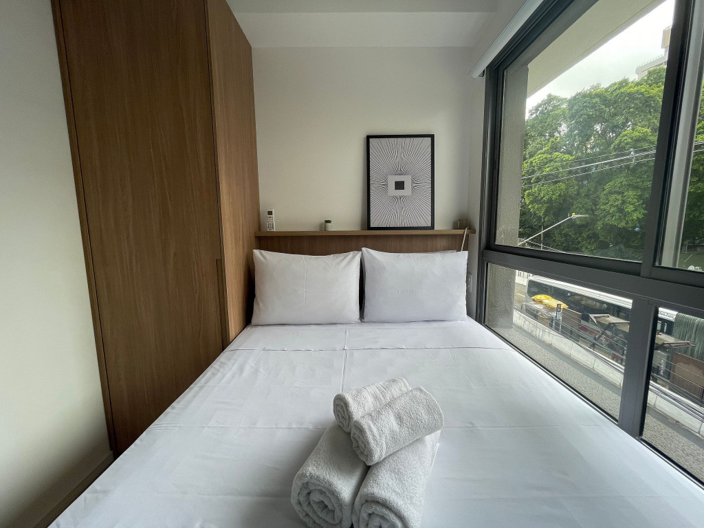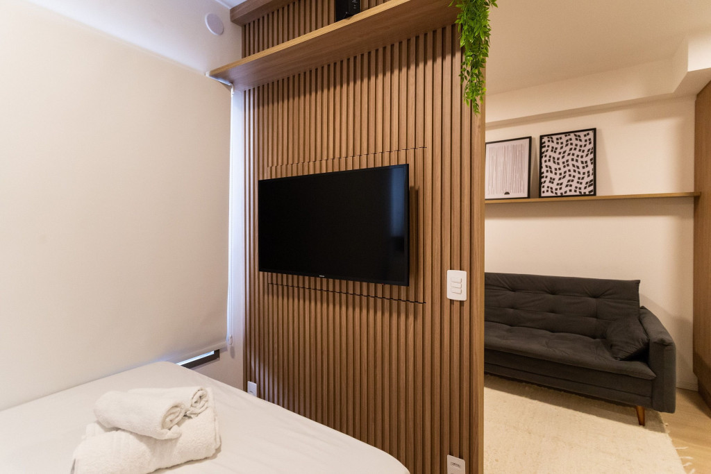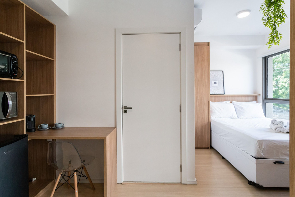 Na cozinha dispomos de utensílios necessários para uma estadia prática, além de banheiro, armário, sofá, escrivaninha para home office, TV Smart e Nespresso. Também dispomos de ar-condicionado (frio e quente) e WI-FI de alta velocidade.